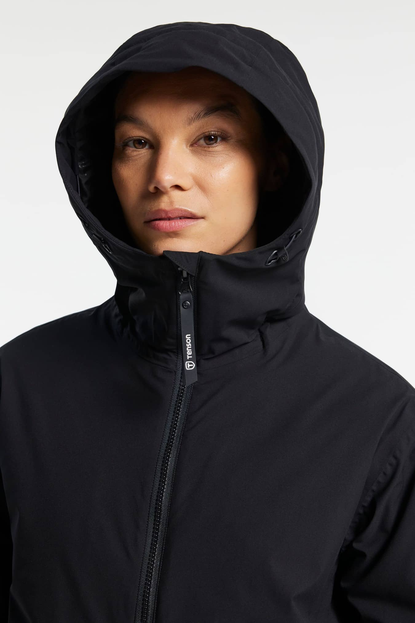 Maddie-jakken er en let polstret vind- og vandtæt damejakke med fast hætte. Udstyret med tapede sømme og Tensons egen MPC-teknologi (WP 5.000 mm / MP 5.000 g/m2/24 t), som kombinerer meget effektiv vandtæthed med enestående åndbarhed. Den har også Tensons genanvendte AirPush™ Insulate-isolering, der er udviklet til at være blød, varm og let. Den har to diskrete sidelommer med lynlås, E-dye-polyesterfor og PFC-fri vandafvisende overflade.