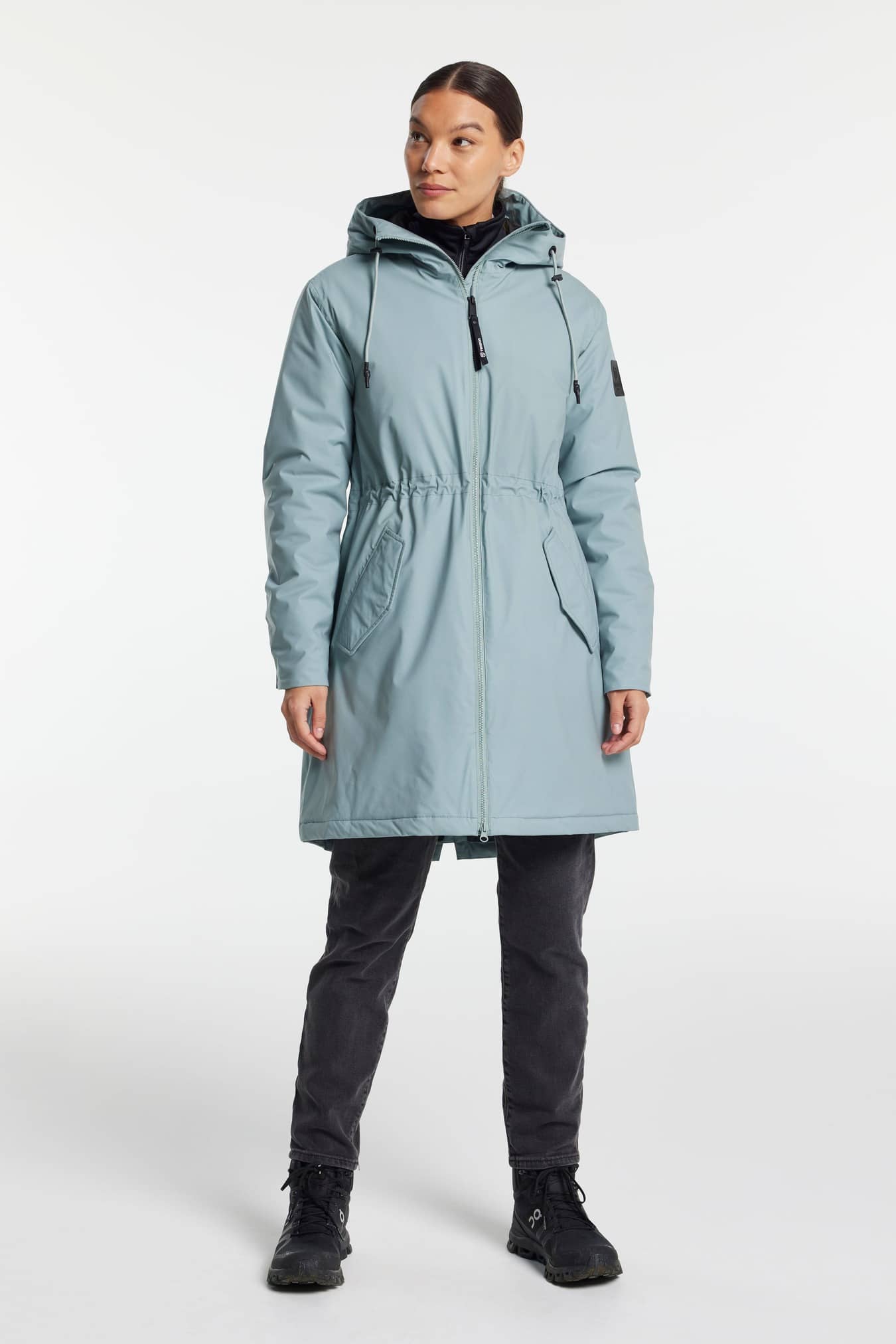 Maddie Parka er en let polstret vind- og vandtæt dameparka med fast hætte og justerbar talje. Udstyret med tapede sømme og Tensons egen MPC-teknologi (WP 5.000 mm / MP 5.000 g/m2/24 t), som kombinerer meget effektiv vandtæthed med enestående åndbarhed. Den har også Tensons genanvendte AirPush™ Insulate-isolering, der er udviklet til at være blød, varm og let. På dage, hvor det er lidt varmere, kan lynlåsen åbnes i begge ender for ekstra ventilation. Den har to diskrete sidelommer med lynlås, E-dye-polyesterfor og PFC-fri vandafvisende overflade.