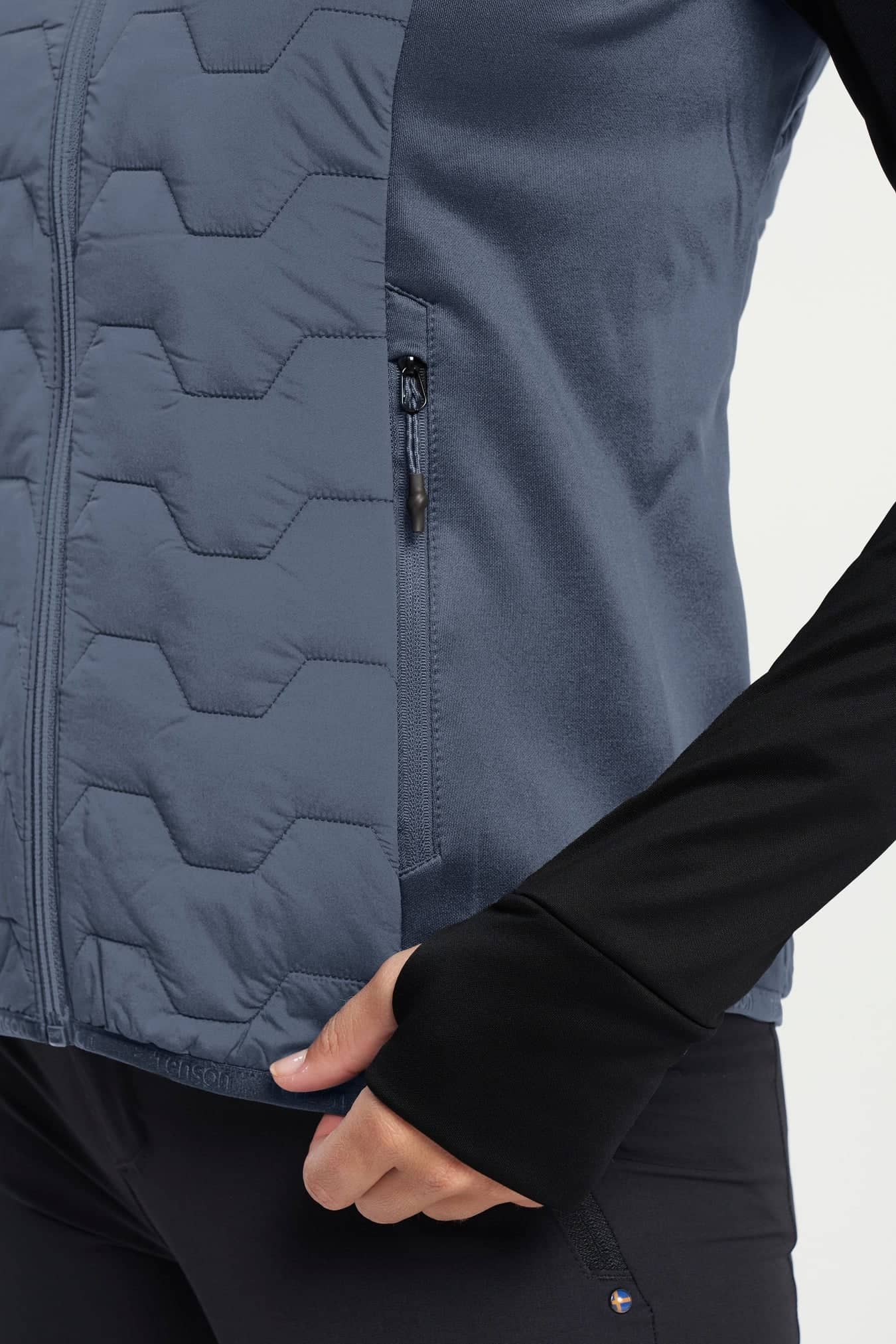 This lightweight, windproof and packable vest is made for adventure travel: Wear it as a vest on its own or as a mid-layer underneath a shell jacket when the temperature drops. The front and back are made from a stretchy quilted fabric with light padding in 100% polyamide. The sides are made of 90% polyester and 10% elastane. Both the waist and armholes are elasticated, and it has two zipped front pockets. The vest is windproof and has a raised collar to protect the neck.