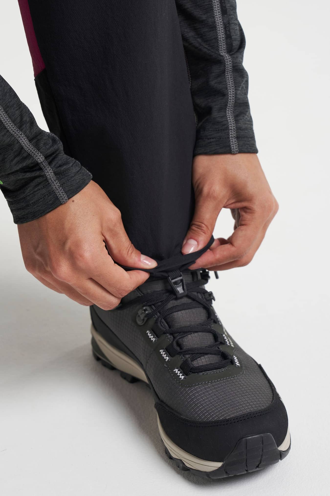 Removable plastic boot hook at leg hem
