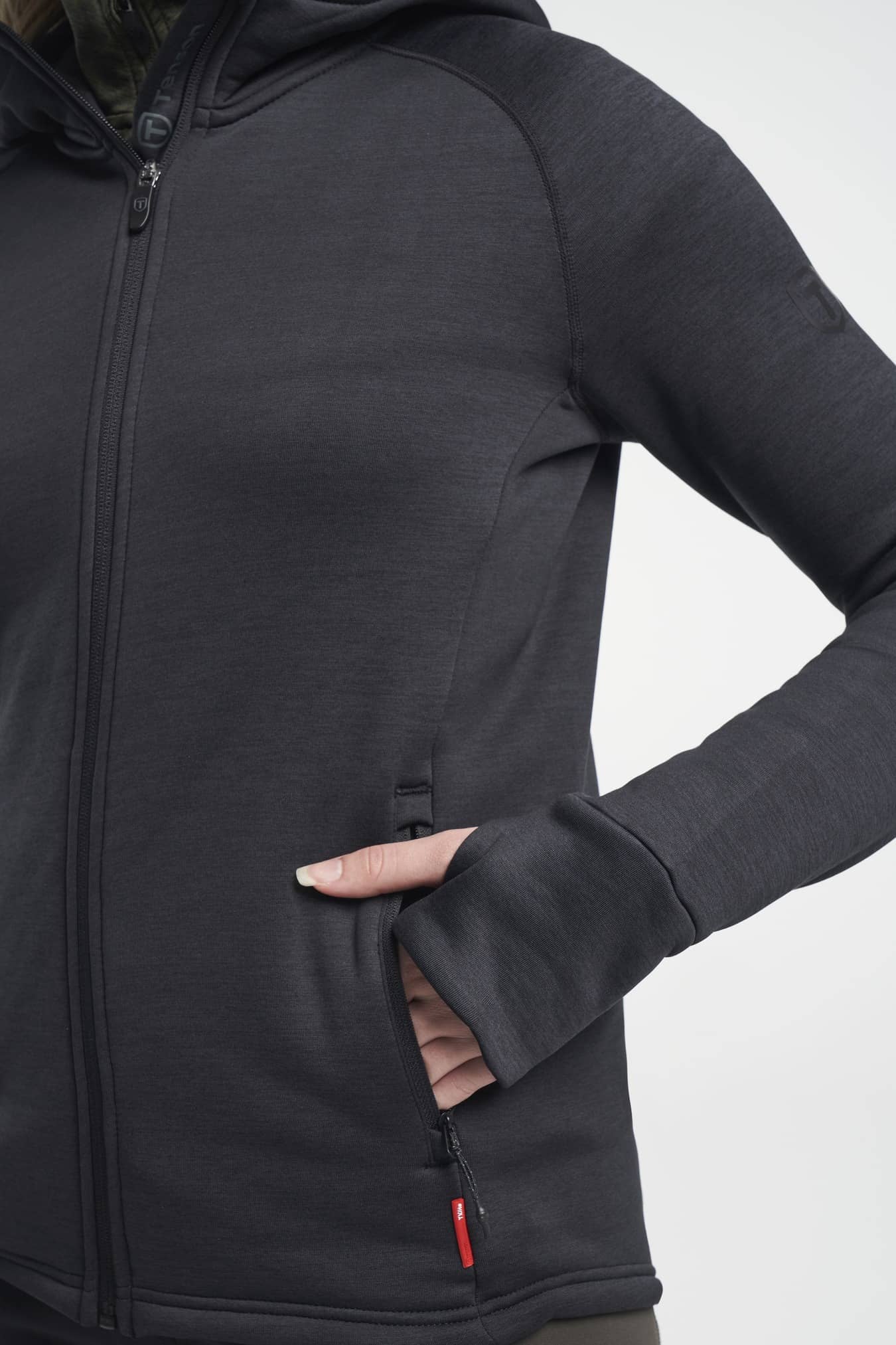 TXlite Hoodie Zip is a women’s zip hoodie with a perfect fit. It's super stretchy and really comfortable to wear. The hood and the hem are adjustable and the zip has a folded chin guard. If you want to wear it as a mid-layer the extended sleeves with thumb loops will prevent the arms from getting caught under your jacket. It also has two front zip pockets to make sure you don't lose your things. Wear it as a comfy hoodie or as a light jacket in town or during outdoor activities.