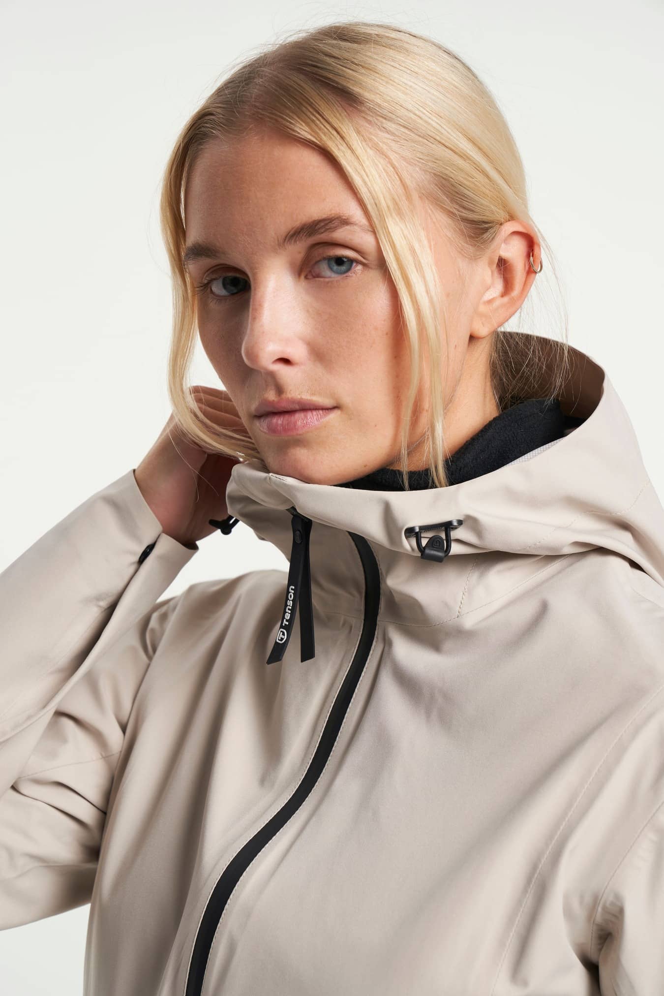 • Adjustable cuffs, Adjustable hood, vertical and horizontal, Adjustable waist, Articulated sleeves, Fixed hood, Innerpocket, Taped seams, Two zippered front pockets, Water repellent zippers
