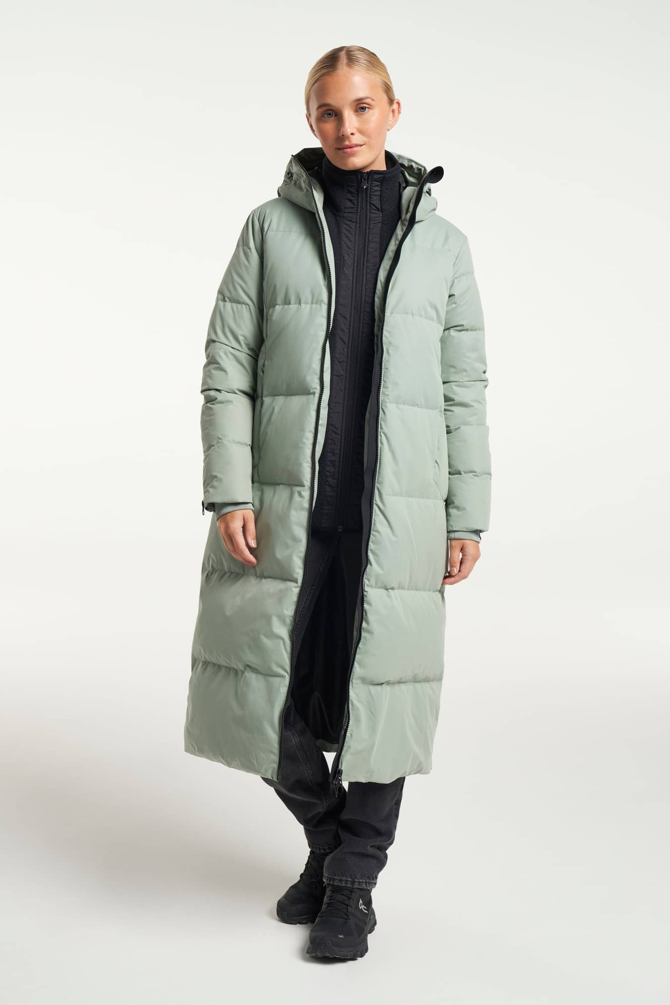 Meet the winter season in a timeless long parka crafted with cozy, soft polyester and a powdery, brushed finish that will stand the test of all elements. It is padded with RDS certified down (500 fill power) with a fluffy 80/20 down-to-feather ratio, giving you all the benefits of down without compromising on our nature. Shanna has a sleek a-lined silhouette and a minimalistic look with black details and designer oversized zippers, on the front, sides and sleeves. Comes with E-dye polyester lining and a PFC free water-repellent finish.