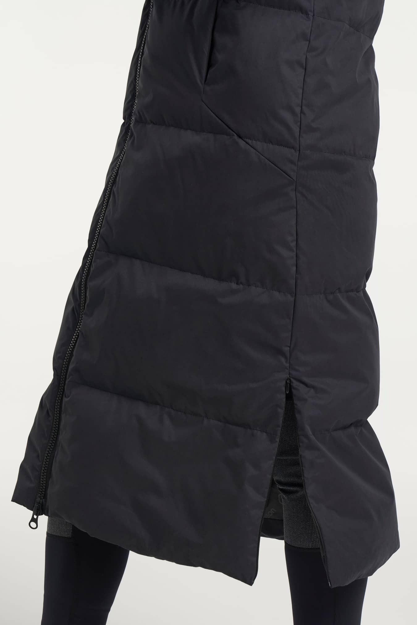 Meet the winter season in a timeless long parka crafted with cozy, soft polyester and a powdery, brushed finish that will stand the test of all elements. It is padded with RDS certified down (500 fill power) with a fluffy 80/20 down-to-feather ratio, giving you all the benefits of down without compromising on our nature. Shanna has a sleek a-lined silhouette and a minimalistic look with black details and designer oversized zippers, on the front, sides and sleeves. Comes with E-dye polyester lining and a PFC free water-repellent finish.