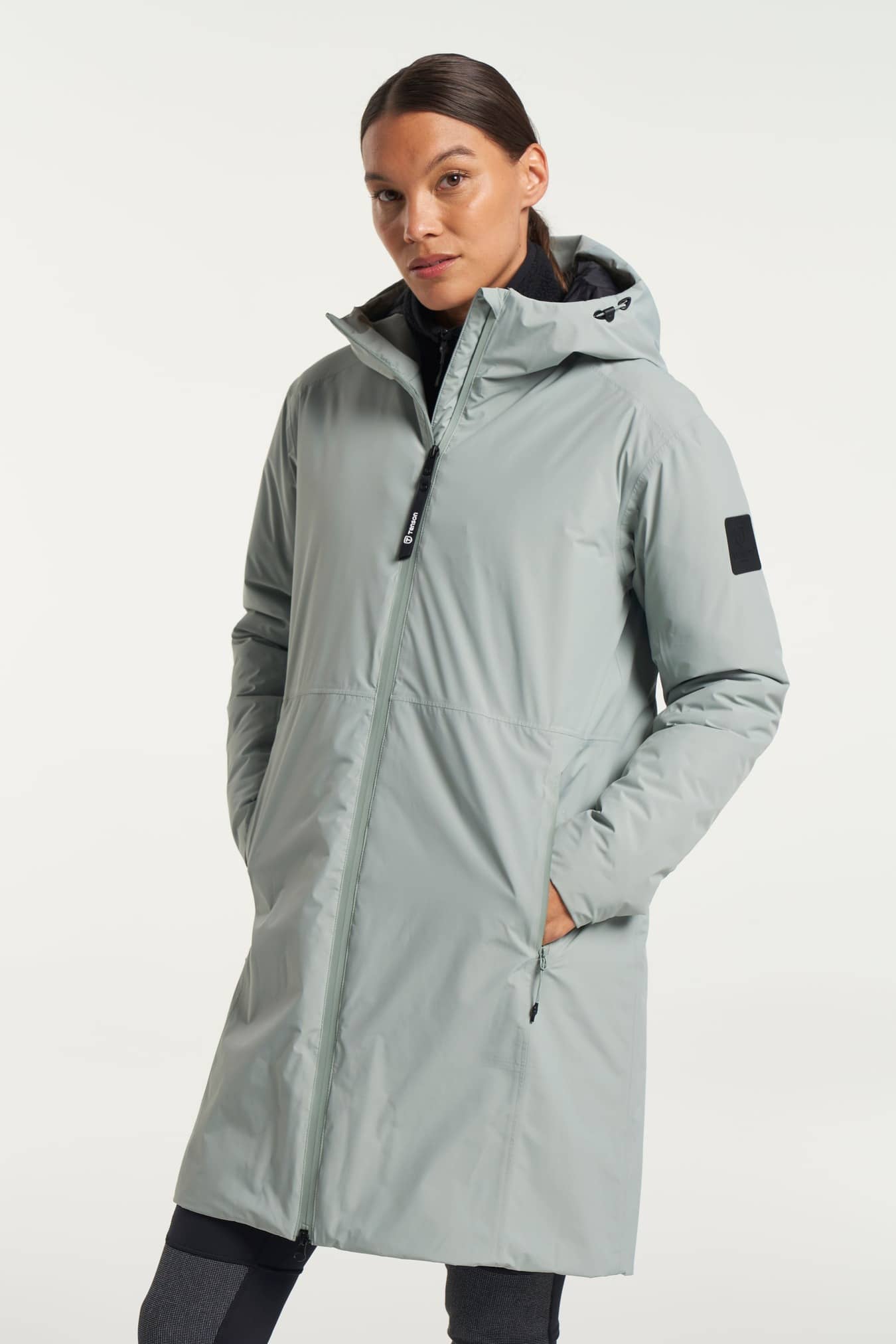The Shift Collection is designed and developed to seamlessly transition your wardrobe from summer to autumn when the weather is often unpredictable. The Shift Coat is a classically stylish, lined and padded raincoat for women. Powered with Tenson’s proprietary MPC technology (WP 5,000mm / MP 5,000 g/m2/24h) plus taped seams, it combines extremely effective waterproofing with exceptional breathability to keep you comfortable no matter the weather. The coat has a fully adjustable hood and a high collar to keep the wind away from your neck. All of the seams are taped and the zipper is water-resistant to help keep you dry in the rain. This coat is lined with recycled AirPush Insulate™ polyester padding for extra warmth. There are two pockets at the front, both with zippers, where you can store important items like your phone and wallet without worrying about losing them. It also has a zipped inside pocket. Wear it about town and/or in the great outdoors. Comes in a PFC-free water-repellent finish.