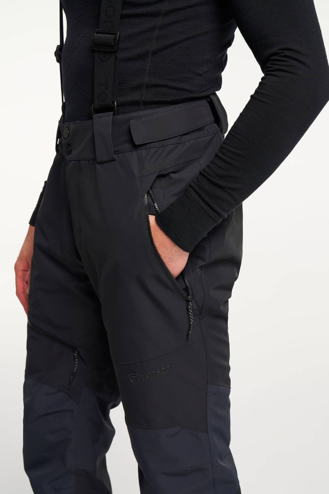 • Adjustable waist, Articulated knees, Detachable suspenders, One leg pocket with zipper, Reinforcement, Snowgaiter, Taped seams, Two zippered front pockets