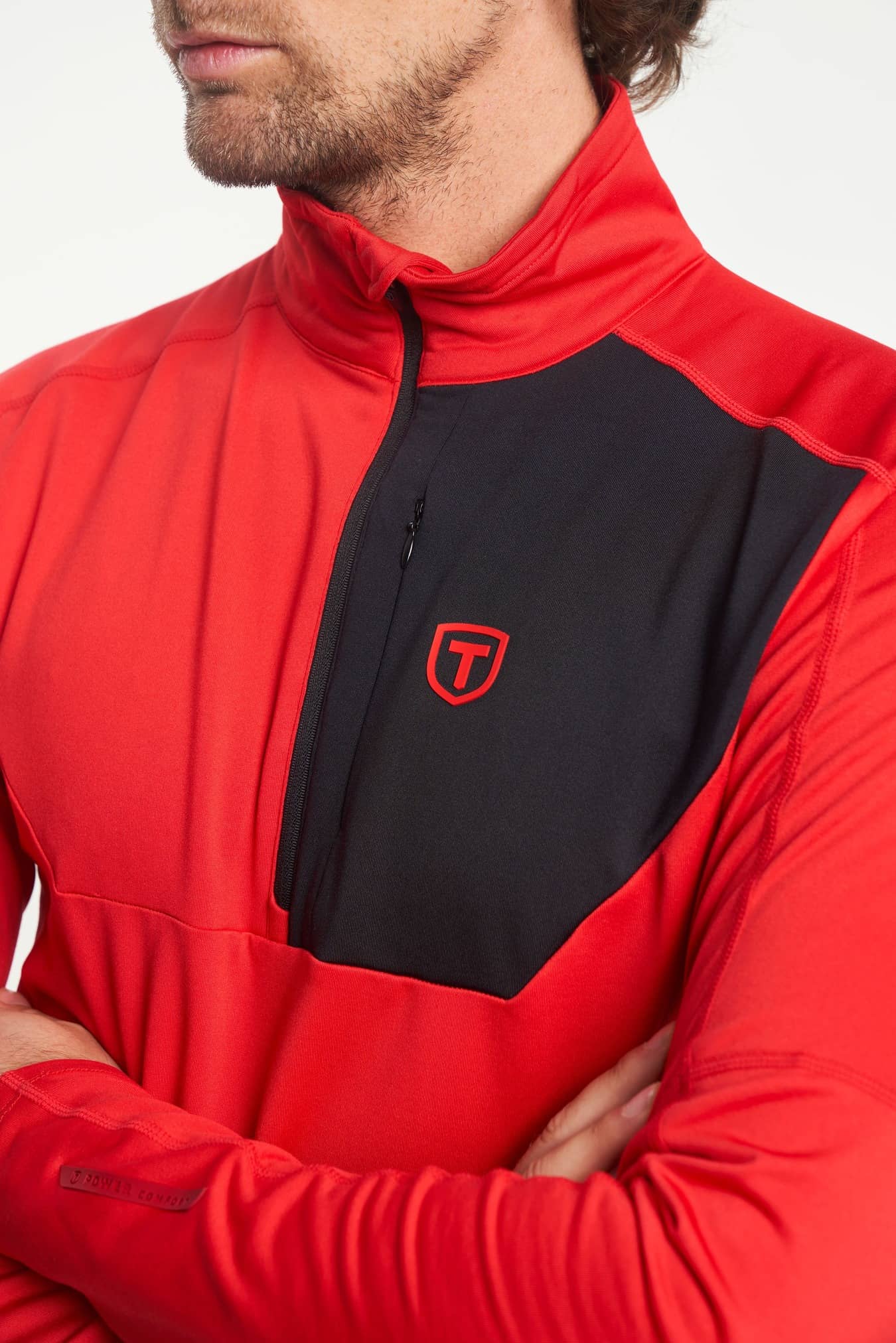 This thin mid-layer, or base layer depending on your preference, provides warmth without being too bulky. Made in a comfortable, stretchy Power Comfort™ fabric – 90% recycled polyester and 10% elastane – it is stretchy and quick-drying, keeping you agile during outdoor activities. It comes with a folded chin guard, articulated arms, and mesh ventilation at the center of the back.
