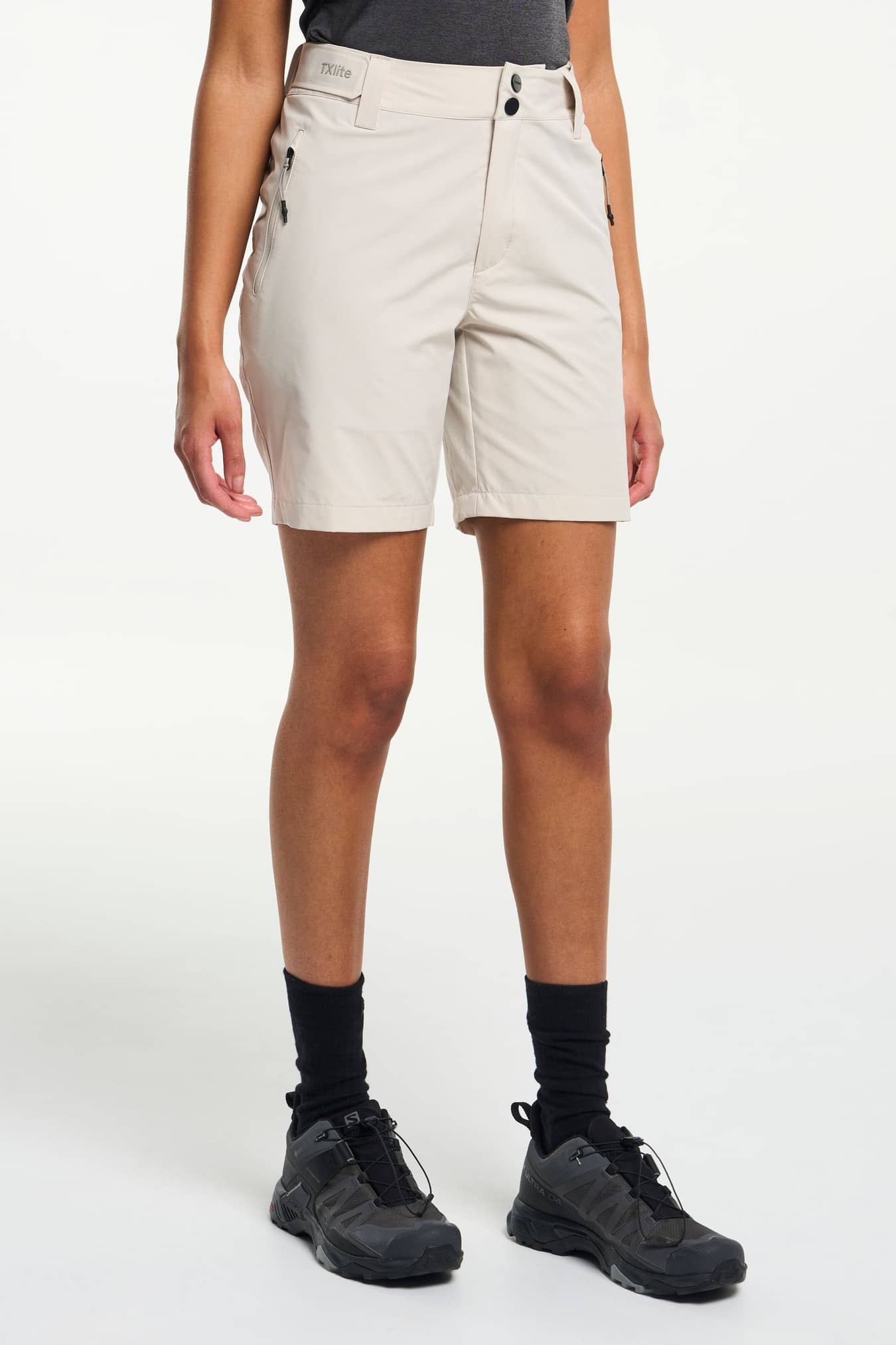 Duurzame en stijlvolle, sneldrogende stretchshorts voor buiten die perfect is voor je dagelijks leven, maar ook voor buitenavonturen met familie en vrienden. De taille is verstelbaar voor een goede pasvorm. De twee voorzakken zijn voorzien van ritssluitingen om je telefoon, portemonnee en sleutels veilig te houden. Deze shorts is gemaakt van een lichtgewicht stof die zelfs in de kleinste tas past, perfect voor lange wandelingen als het weer wisselvallig lijkt. Wordt geleverd met een PFC-vrije waterafstotende afwerking.