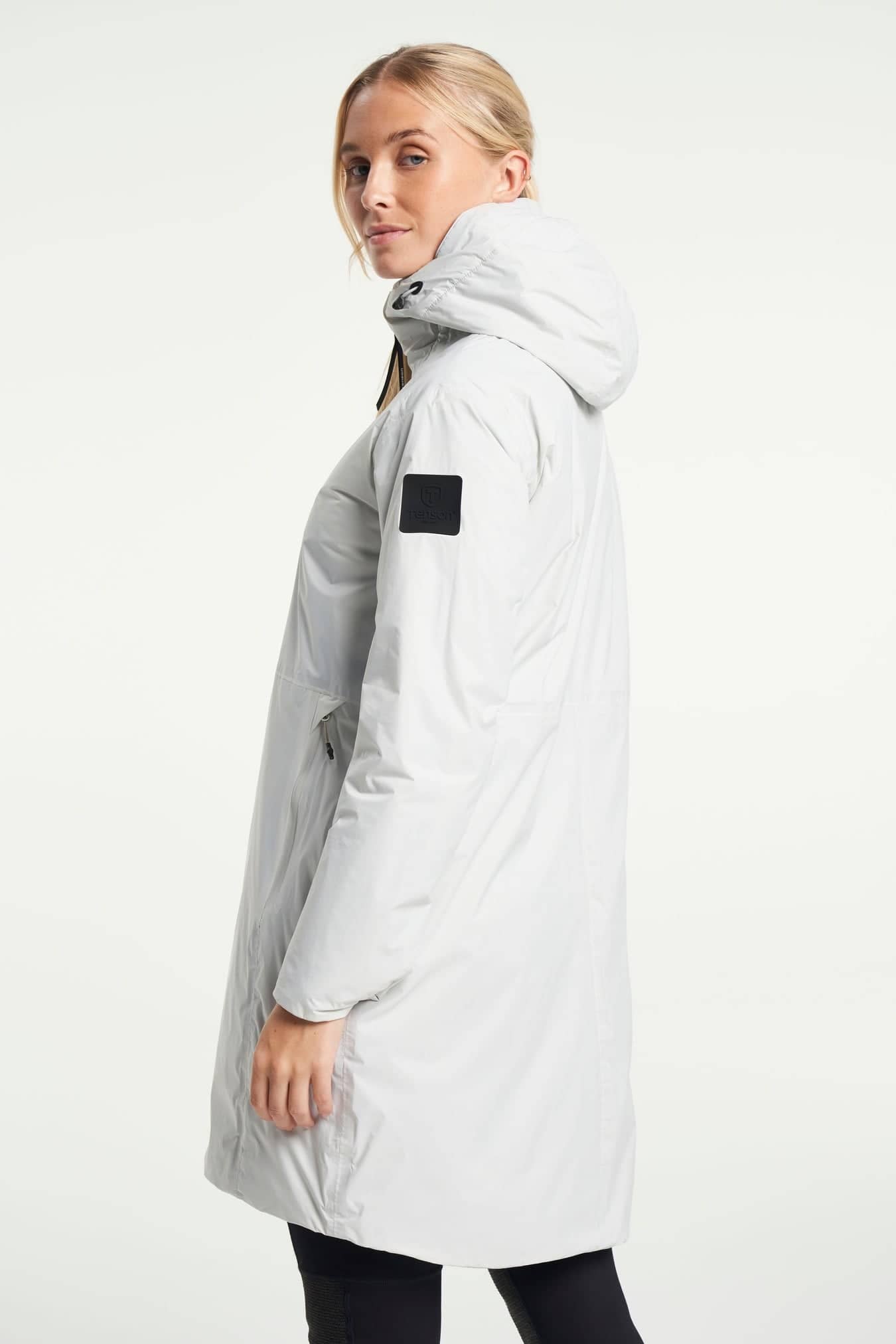 Transition Coat är en klassisk fodrad regnkappa för dam i Tensons MPC-teknologi som andas och är vattenavvisande som skyddar mot både vind och vatten. Transition Collection är framtagen för att bäras både höst och vår när vädret ofta är väldigt oförutsägbart. Den är utrustad med en huva som går att justera mer eller mindre åtsittande. Kragen är hög för att hålla vinden borta från halsen. Alla sömmar är tejpade och dragkedjan är vattenavvisande vilket hjälper till att regnet håller sig på utsidan av kappan. För att behålla värmen är den fodrad med recycled Air-Push polyestervaddering. På framsidan finns två fickor som båda har dragkedja där du kan förvara dina tillhörigheter, såsom mobil och plånbok, utan att oroa dig för att de trillar ut. Det finns även en innerficka med dragkedja. Kappan är både funktionell och klassiskt stilren vilket gör att den kan bäras i stan eller på utflykter i naturen.
