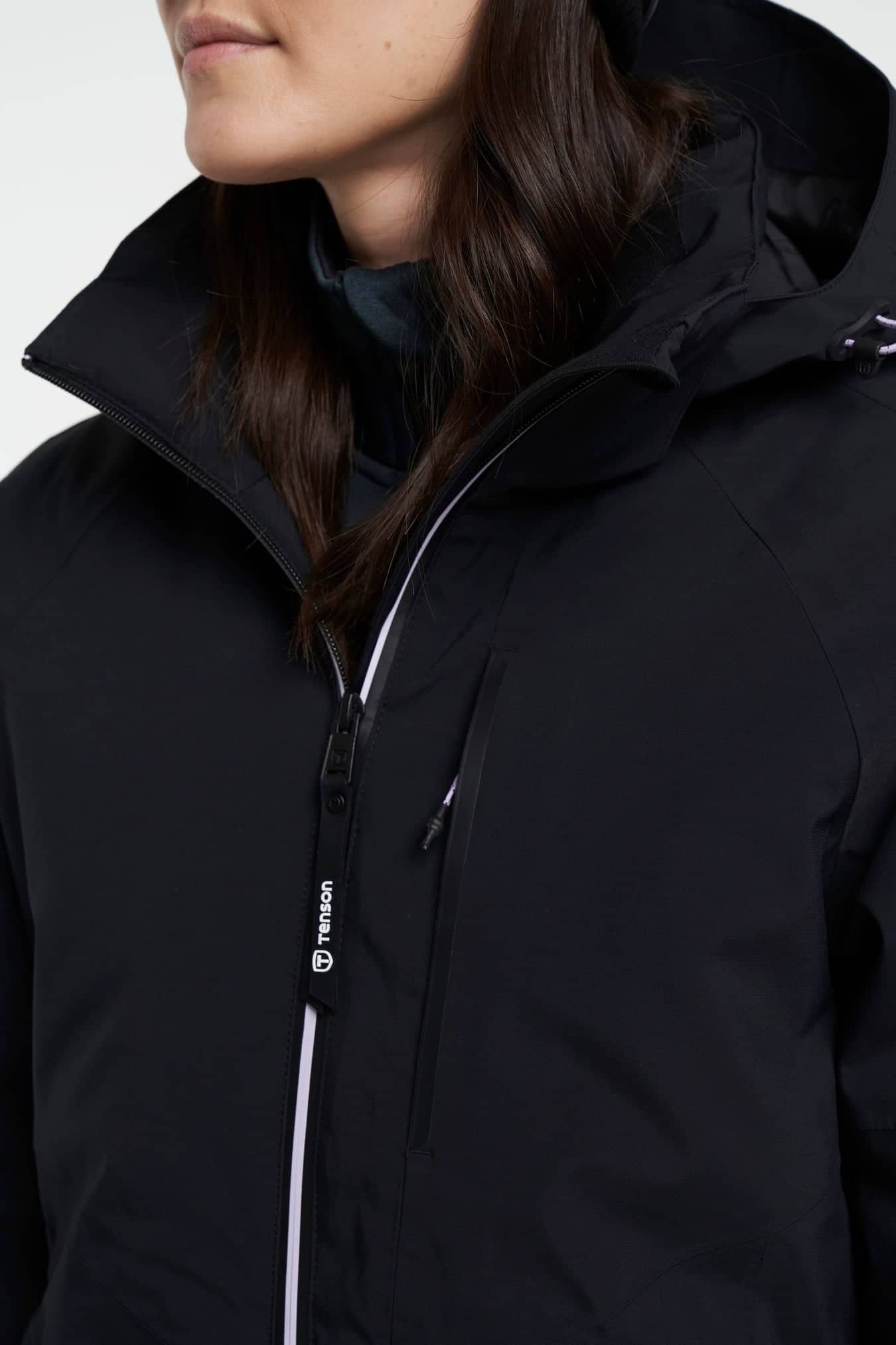 Core Ski Jacket Women är utrustad med Tensons egenutvecklade MPC Plus-teknik (WP 10 000 mm / MP 10 000 g/m2/24 h) som kombinerar mycket effektiv vattentäthet med god andningsförmåga för att hålla dig bekväm i snöiga, blåsiga och våta förhållanden, både i fjällen och inne i stan. AirPush™-isoleringen ger effektiv fukthantering med bibehållen värme. Jackan har fleece på insidan av kragen och fickorna för att hålla dig varm. Det finns två fickor med dragkedja, en bröstficka med dragkedja och en innerficka med dragkedja för säker förvaring. Ärmarna, luvan och fållen är justerbara för perfekt passform och jackan har också ett snölås som skyddar dig mot kyla och snö. Den har E-dye polyesterfoder och en PFC-fri vattenavvisande yta.
