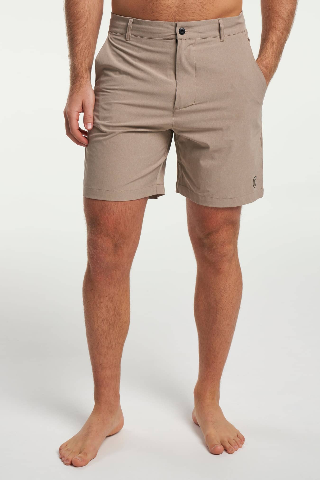 Eine Badeshorts mit Taschen, die so vielseitig ist, dass man sie auch als normale Shorts tragen kann. Mit diesen Badeshorts sind Sie immer bereit für ein spontanes Bad und das schnelltrocknende Material aus 90 % Polyester sorgt dafür, dass Sie auf dem Heimweg nicht nass werden. Tragen Sie sie im Sommer mit einem T-Shirt oder Hemd für einen entspannten, aber stilvollen Look am Strand. Die Shorts haben zwei Taschen auf der Vorderseite und zwei auf der Rückseite, also vergessen Sie nicht, Ihr Handy herauszunehmen, bevor Sie schwimmen gehen! Aqua Hybrid Swim ist in den Farben anthrazit und khaki erhältlich.
