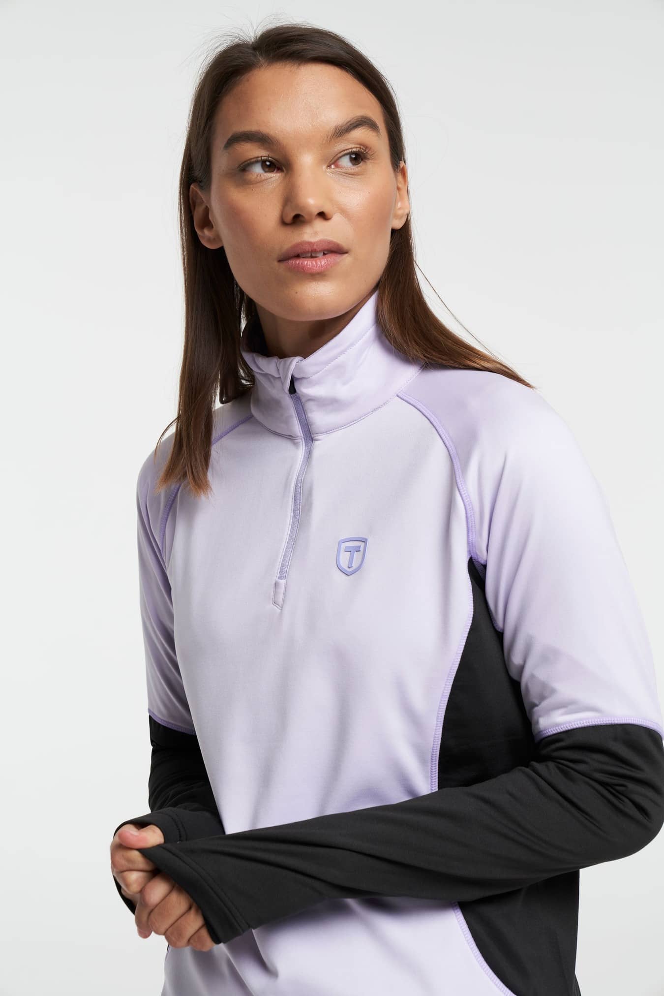Baselayer Half Zip ist ein Thermoshirt für Frauen mit Reißverschluss. Es besteht aus 90 % Polyester und 10 % Elasthan, wodurch es schnell trocknet und Feuchtigkeit gut ableitet. Es hat einen halben Reißverschluss am Hals mit einer kleinen Abdeckung für den Reißverschluss am Kinn und einen hohen Kragen, der deinen Hals vor Kälte schützt. Das Thermoshirt hat ein Tenson-Logo auf der Brust und auf dem Rücken. Die markierten Seiten geben dem Pullover einen coolen Look. Das Shirt ist elastisch und flexibel bei Aktivitäten, perfekt für einen Skiurlaub. Base Power Comfort ist in vier Farben erhältlich: Koralle, Hellviolett, Türkis und Schwarz.