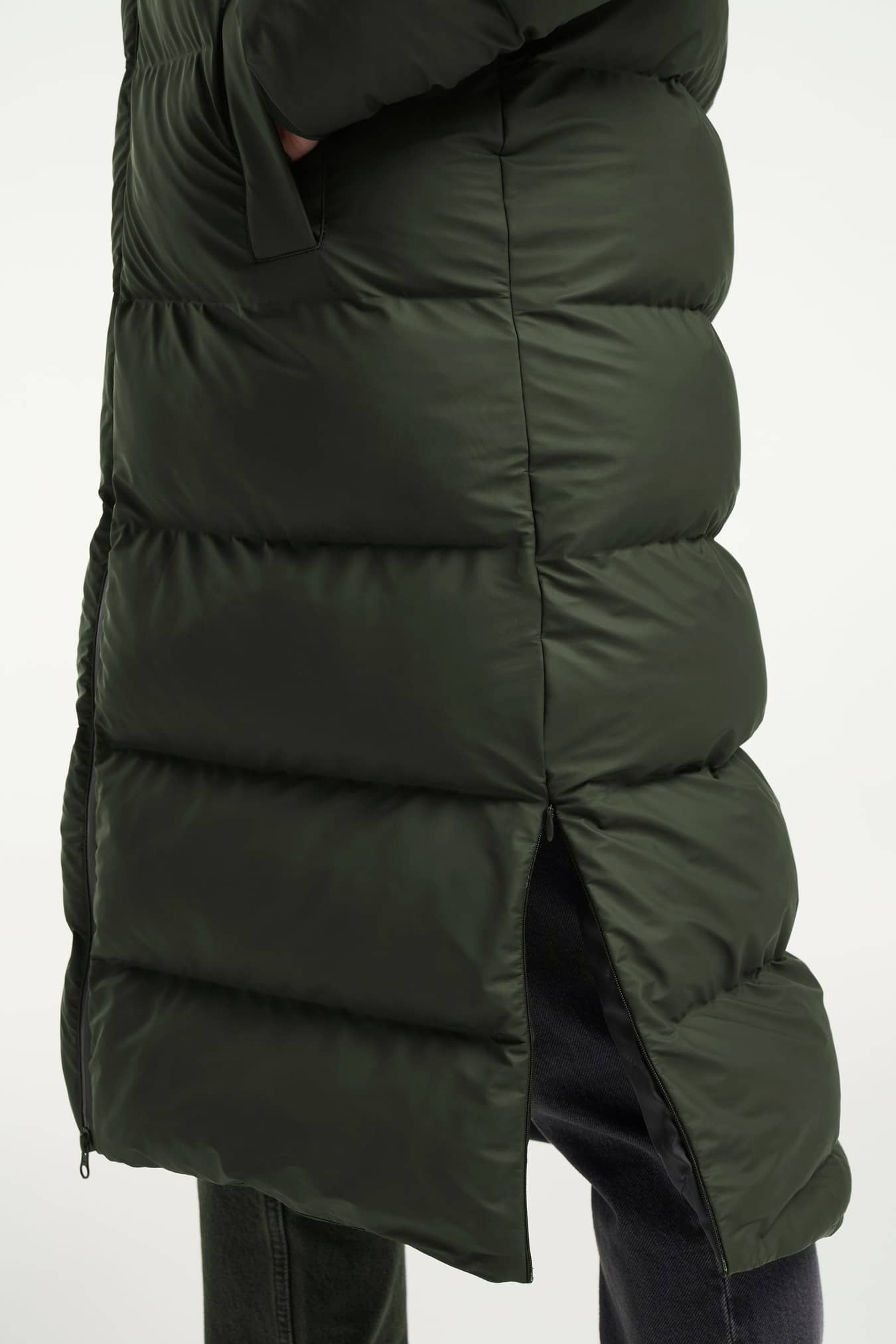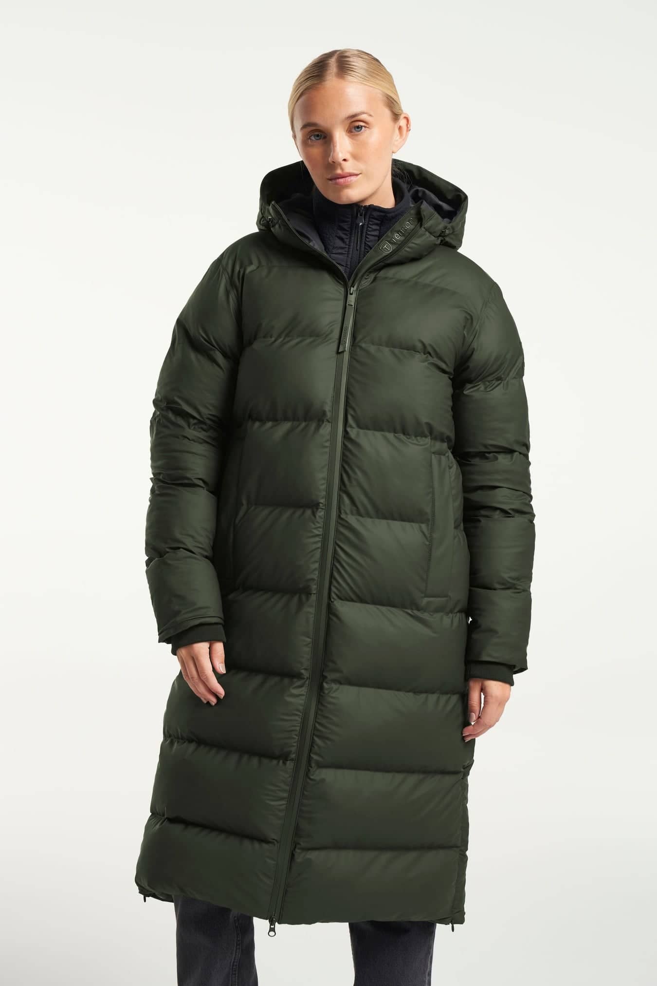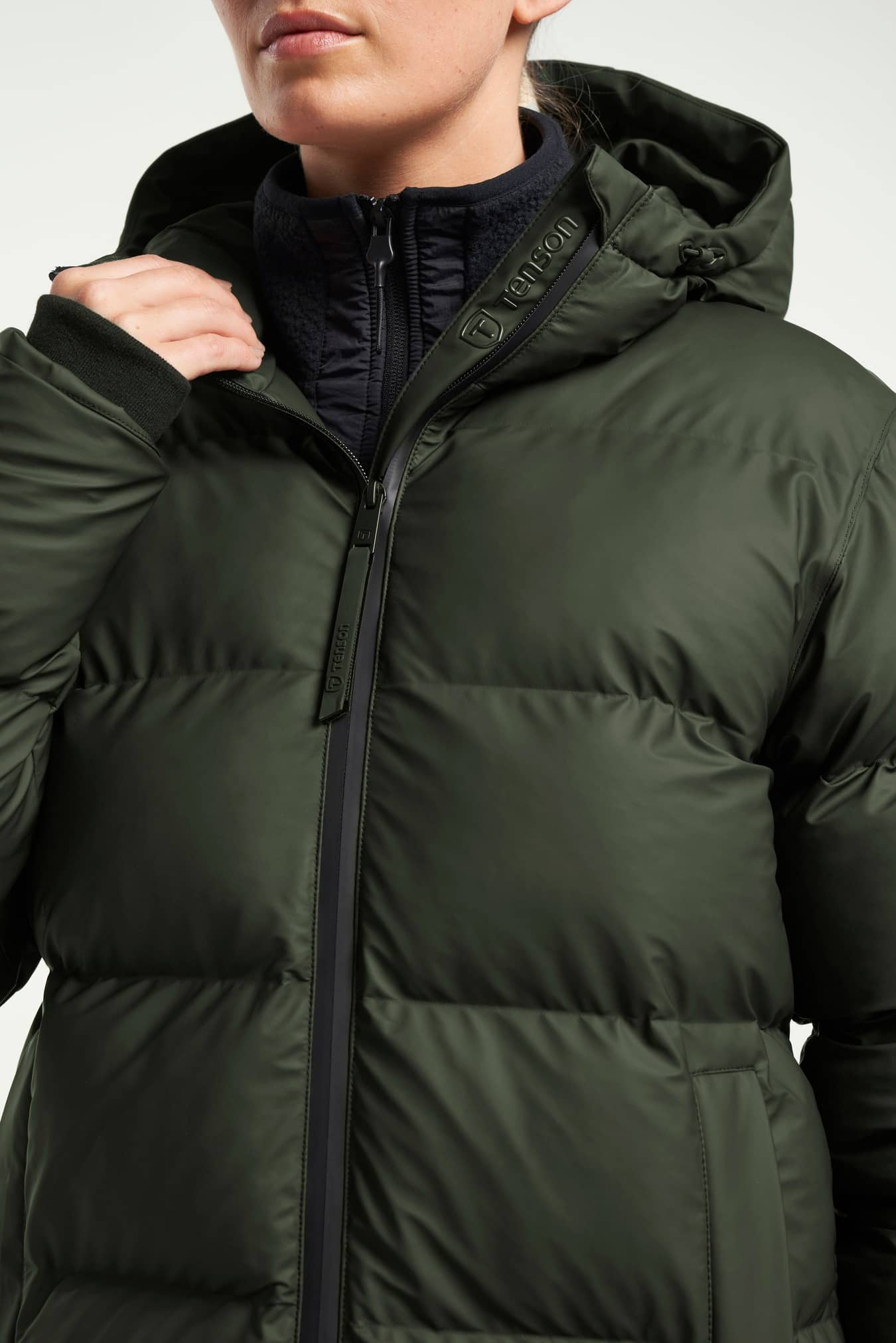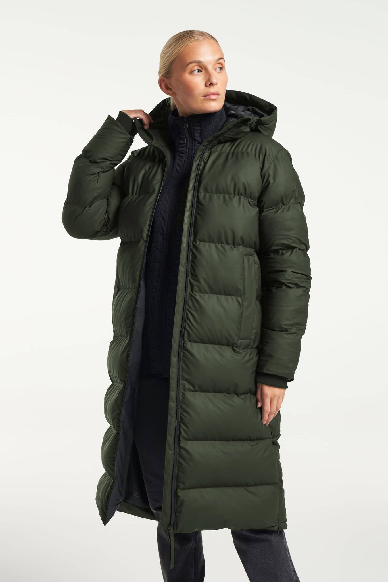 Modischer, klassischer, langer, wind- und wasserdichter Pufferparka mit gerader Silhouette. Gefüttert mit AirPush™ Insulate, einer federlosen Wattierung, die für geringes Gewicht und hervorragende Isolierung bei kalten Wetterbedingungen sorgt. Verstellbare Kapuze mit integrierten Stoppern und einem hohen, weichen Kragen, der vor kaltem Wind schützt. Geräumige Seitentaschen mit Reißverschluss und eine Innentasche mit Reißverschluss für Wertsachen. Futter aus E-Dye-Polyester und PFC-freie wasserabweisende Ausrüstung.
