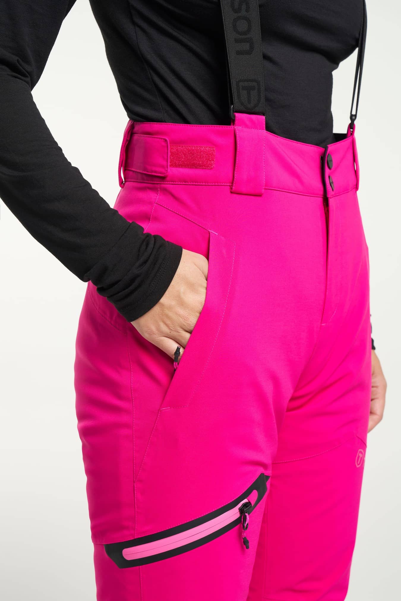 Core SkiPants are a pair of classic and very versatile women's SkiPants. They are powered with Tenson’s proprietary MPC Plus technology (WP 8 000mm / MP 5 000 g/m2/24 h) which combines very effective waterproofing with good breathability to keep you comfortable during snowy, windy, and wet conditions on the mountain. Features AirPush™ Insulate that provides vapor management while maintaining warmth. Core Pants can be used with or without braces, depending on what kind of fit you want and the adjustable waist and pre-bent knees add to freedom of movement. The pants have two front pockets with zips and a leg pocket for small items or just to warm your hands. The pants are reinforced on the inside, have snow gaiters by the ski boots to keep snow out regardless of the weather on the slope. Combine the pants with a Core MPC Plus Jacket for a complete set. Comes with E-dye polyester lining and a PFC free water-repellent finish.