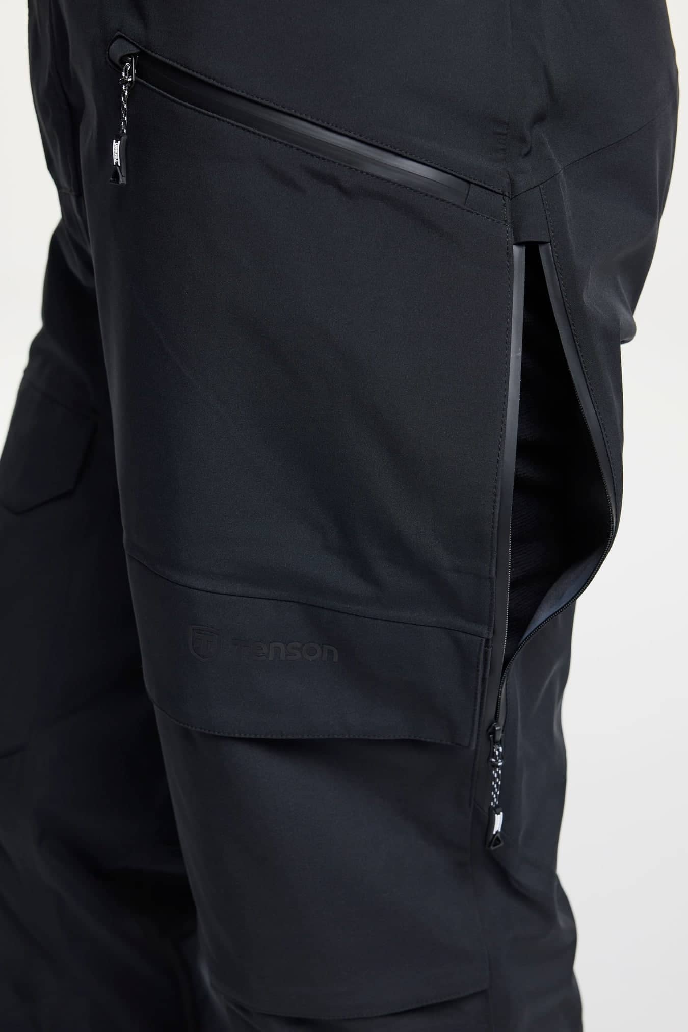 • Adjustable waist with hidden elastic, Articulated knees, Bib with adjustable suspenders, Reinforcement, Silicone gripper at leg opening, Snowgaiter inside leg hem, Taped seams, Two front pockets with zippers, Two legpockets at front, Water repellent zippers, Ventilation at sides