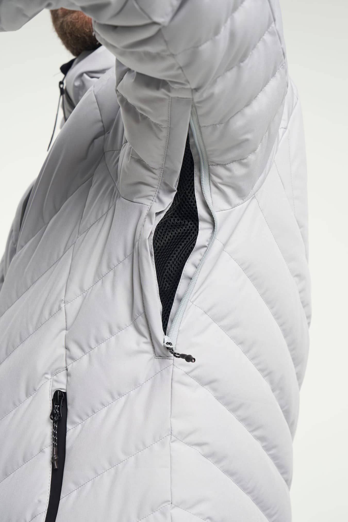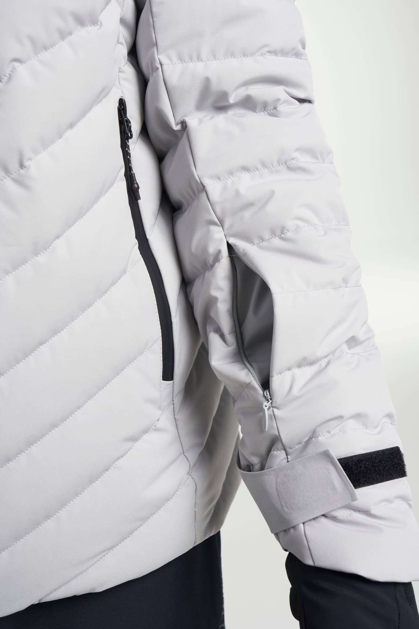 Adjustable cuffs, Adjustable hem, Adjustable hood, vertical and horizontal, Articulated sleeves, Detachable snowgaiter, Fill Power 600, Fixed hood, Fleece lined pockets, Folded chinguard, Hem adjustment, High collar, Inner lycra cuffs at sleeve ends, Innerpocket with elastic mesh, Innerpocket with zip, Insulation: Duckdown 90/10, Laminated brim, One chest pocket with zipper, RDS certified down, Ski pass pocket, Snow skirt: removable with zip, Two front pockets with zippers, Water repellent zippers, Ventilation under arm