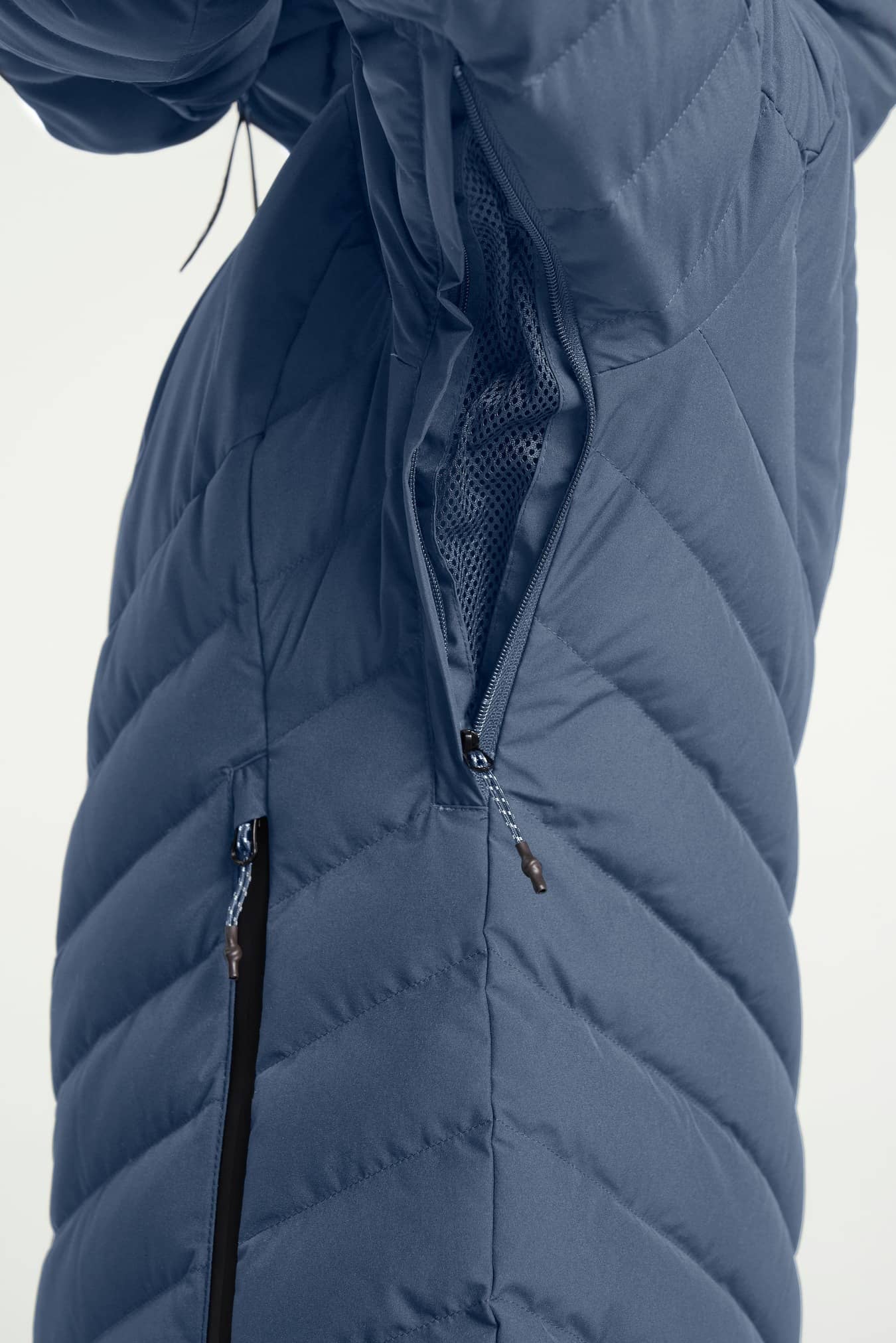 Adjustable cuffs, Adjustable hem, Adjustable hood, vertical and horizontal, Articulated sleeves, Detachable snowgaiter, Fill Power 600, Fixed hood, Fleece lined pockets, Folded chinguard, Hem adjustment, High collar, Inner lycra cuffs at sleeve ends, Innerpocket with elastic mesh, Innerpocket with zip, Insulation: Duckdown 90/10, Laminated brim, One chest pocket with zipper, RDS certified down, Ski pass pocket, Snow skirt: removable with zip, Two front pockets with zippers, Water repellent zippers, Ventilation under arm