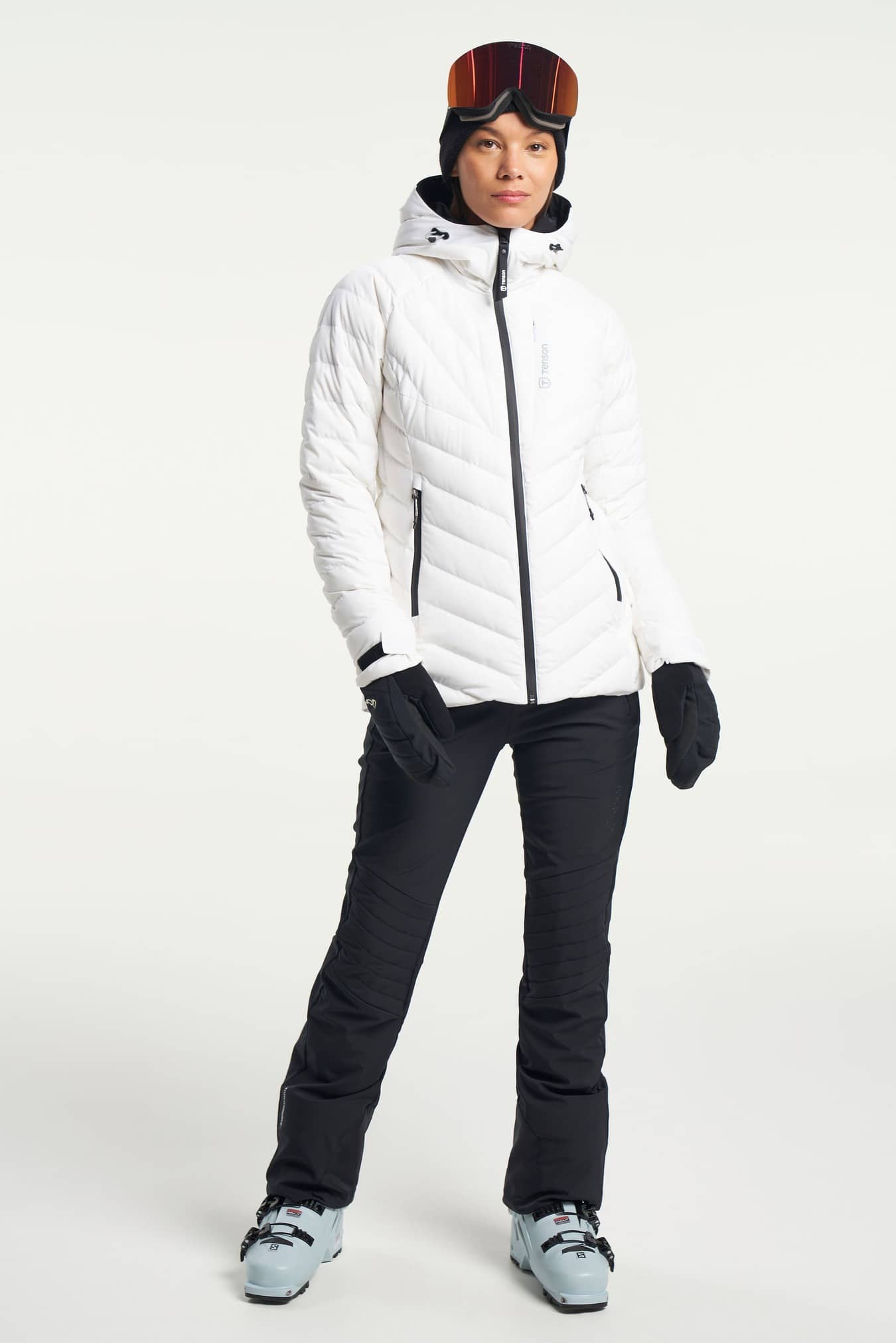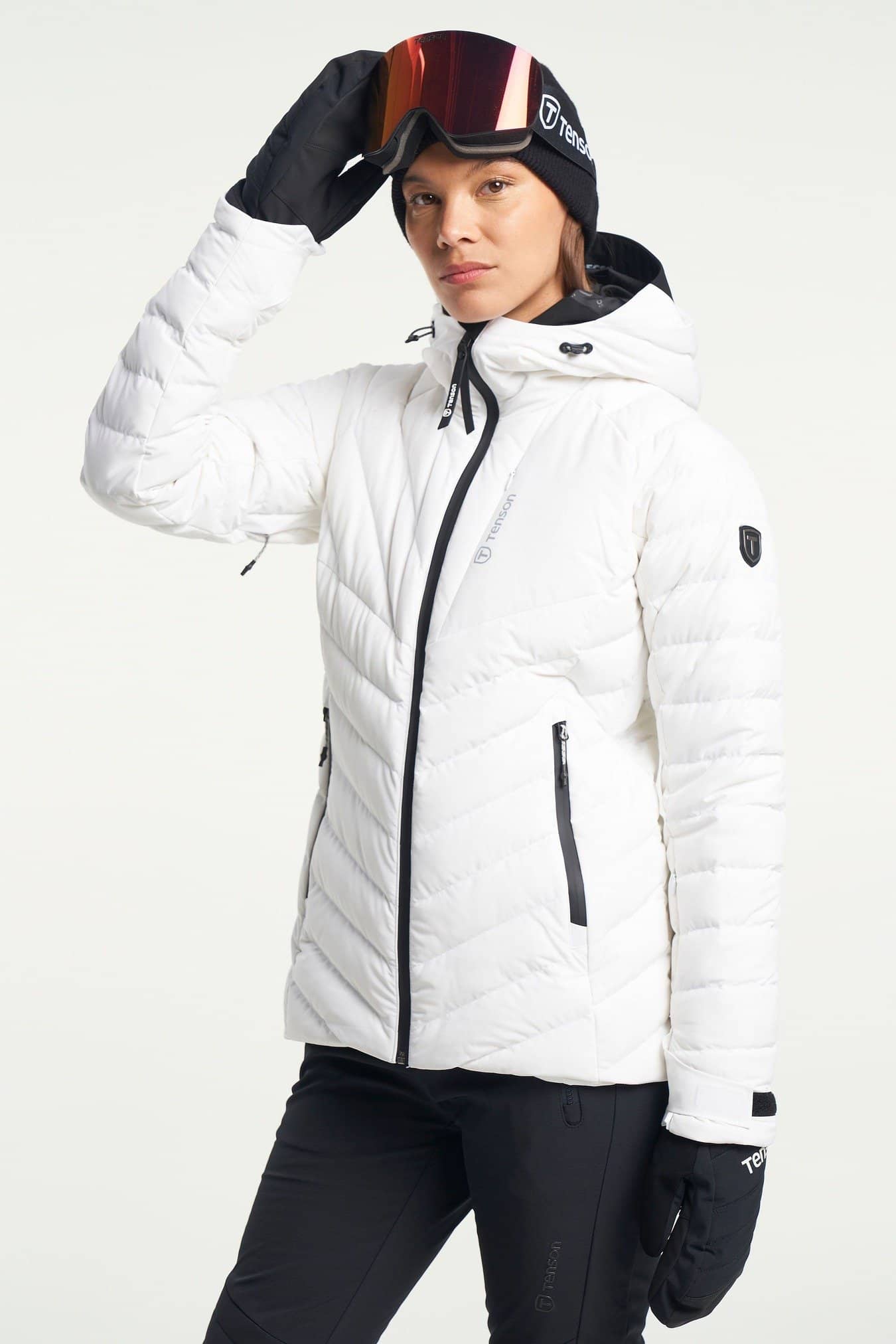 Diese leichte Daunen-Skijacke für Damen besteht aus RDS-zertifizierten Daunen, die Sie warm und bequem halten. Sie hat eine feste Kapuze, die sich horizontal verstellen lässt und zusammen mit dem hohen Kragen den kalten Wind vom Hals fernhält. Sie hat zwei Vordertaschen mit Reißverschlüssen und eine Belüftung mit Reißverschluss unter den Armen. Die elastischen Ärmelbündchen und die verstellbare Taille sorgen für einen perfekten Sitz, ohne die kalte Luft hereinzulassen. Diese stylische und hochfunktionelle Daunen-Skijacke sorgt dafür, dass Sie sowohl auf den Bergen als auch beim Après-Ski eine gute Figur machen. Kombinieren Sie diese Jacke mit der Tenson Skihose, um den Look zu vervollständigen.