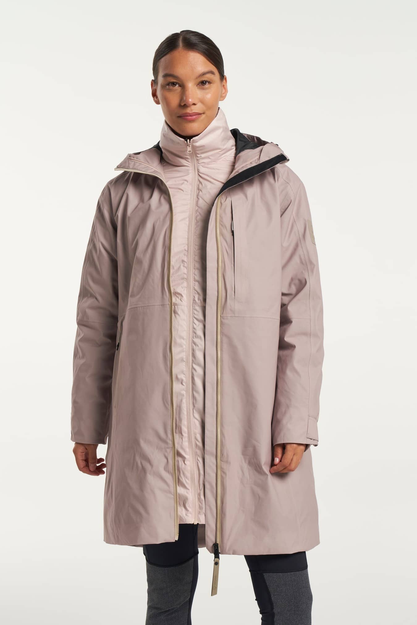 Die Transition Kollektion wurde für den nahtlosen Übergang vom Sommer zum Herbst entwickelt, wenn das Wetter oft unberechenbar ist. Die Transition Vest ist eine Damen-Regenweste mit Kapuze in einem stylischen, langen Design, die mit der von Tenson entwickelten MPC-Technologie (WP 5.000mm / MP 5.000 g/m2/24h) mit versiegelten Nähten ausgestattet ist, die extrem effektive Wasserdichtigkeit mit außergewöhnlicher Atmungsaktivität kombiniert, damit Sie sich wohl fühlen. Für zusätzliche Wärme ist sie mit recyceltem AirPush Insulate™-Polyester gefüttert. Für eine bequeme Passform hat die Weste einen voll verstellbaren Kordelzug in der Taille. Sie ist am Rücken etwas länger, was ein schönes Detail ist, aber auch, damit man sich hinsetzen kann, ohne Angst zu haben, nass zu werden. An heißen Tagen kann der Reißverschluss an beiden Enden geöffnet werden, damit die Luft zirkulieren kann. Auf der Vorderseite befinden sich zwei Reißverschlusstaschen, in denen Sie wichtige Dinge wie Ihr Handy und Ihr Portemonnaie verstauen können, ohne befürchten zu müssen, sie zu verlieren, sowie eine Innentasche mit Reißverschluss. Die Tasche ist mit einer PFC-freien, wasserabweisenden Beschichtung