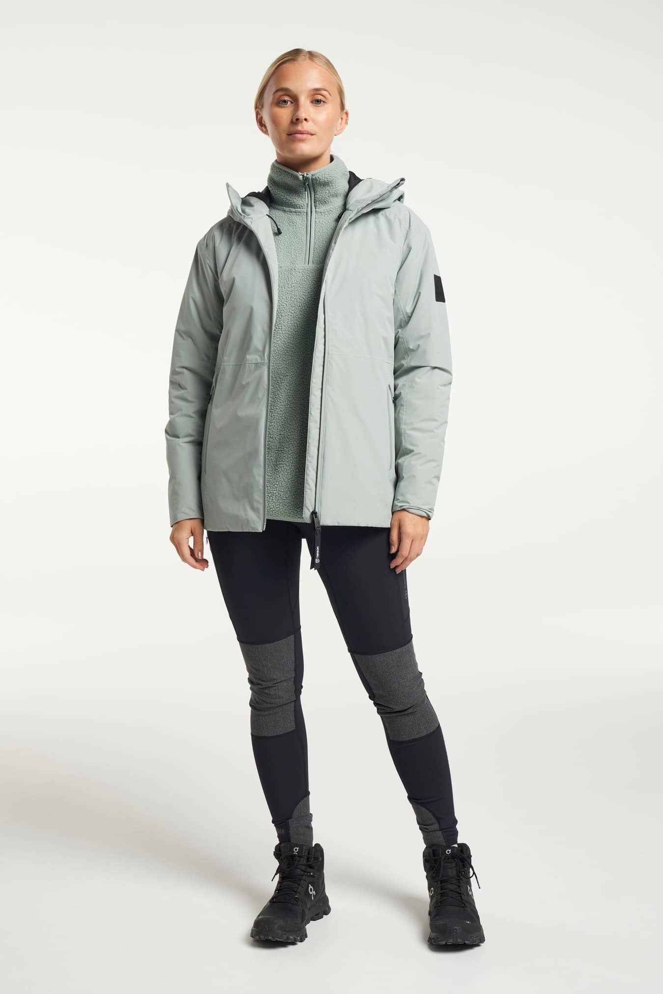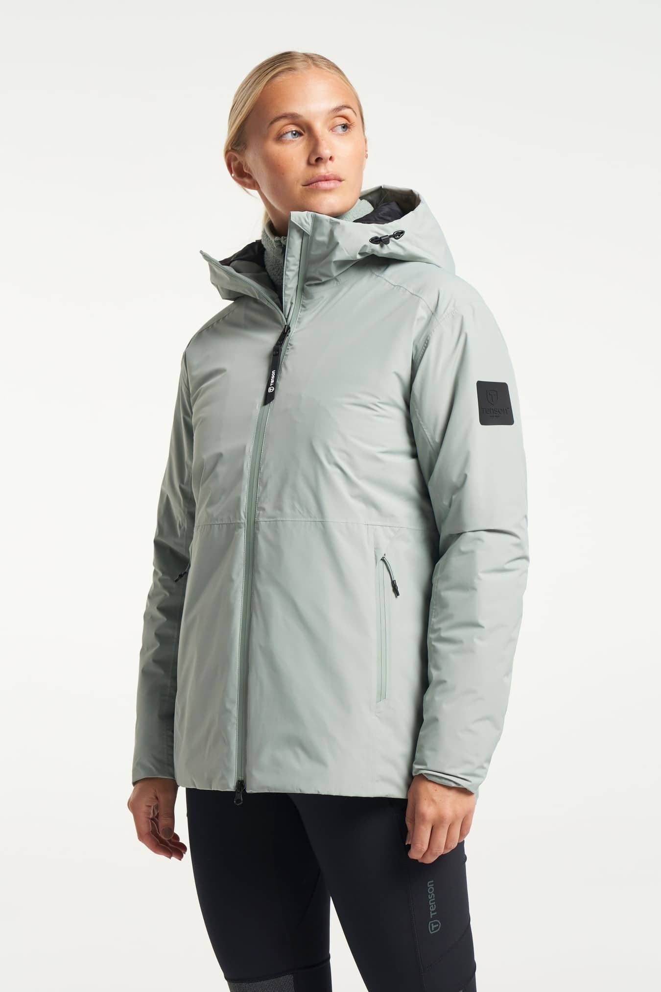 Die Shift Collection wurde entworfen und entwickelt, um einen nahtlosen Übergang von der Sommer- zur Herbstgarderobe zu schaffen, wenn das Wetter oft unvorhersehbar ist. Die Shift Jacke ist eine klassisch elegante, gefütterte und wattierte Regenjacke für Damen. Ausgestattet mit der von Tenson entwickelten MPC-Technologie (WP 5.000mm / MP 5.000 g/m2/24h) und versiegelten Nähten, kombiniert sie extrem effektive Wasserdichtigkeit mit außergewöhnlicher Atmungsaktivität, damit du dich bei jedem Wetter wohlfühlst. Die Jacke hat eine voll verstellbare Kapuze und einen hohen Kragen, der den Wind vom Hals fernhält. Alle Nähte sind versiegelt und der Reißverschluss ist wasserabweisend, damit du auch bei Regen trocken bleibst. Diese Jacke ist mit recycelter AirPush Insulate™-Polyesterwattierung gefüttert, um zusätzliche Wärme zu bieten. An der Vorderseite befinden sich zwei Taschen mit Reißverschlüssen, in denen du wichtige Dinge wie dein Handy und deine Brieftasche aufbewahren kannst, ohne befürchten zu müssen, sie zu verlieren. Außerdem hat sie eine Innentasche mit Reißverschluss. Trage sie in der Stadt und/oder in der freien Natur. Mit einer PFC-freien, wasserabweisenden Beschichtung.