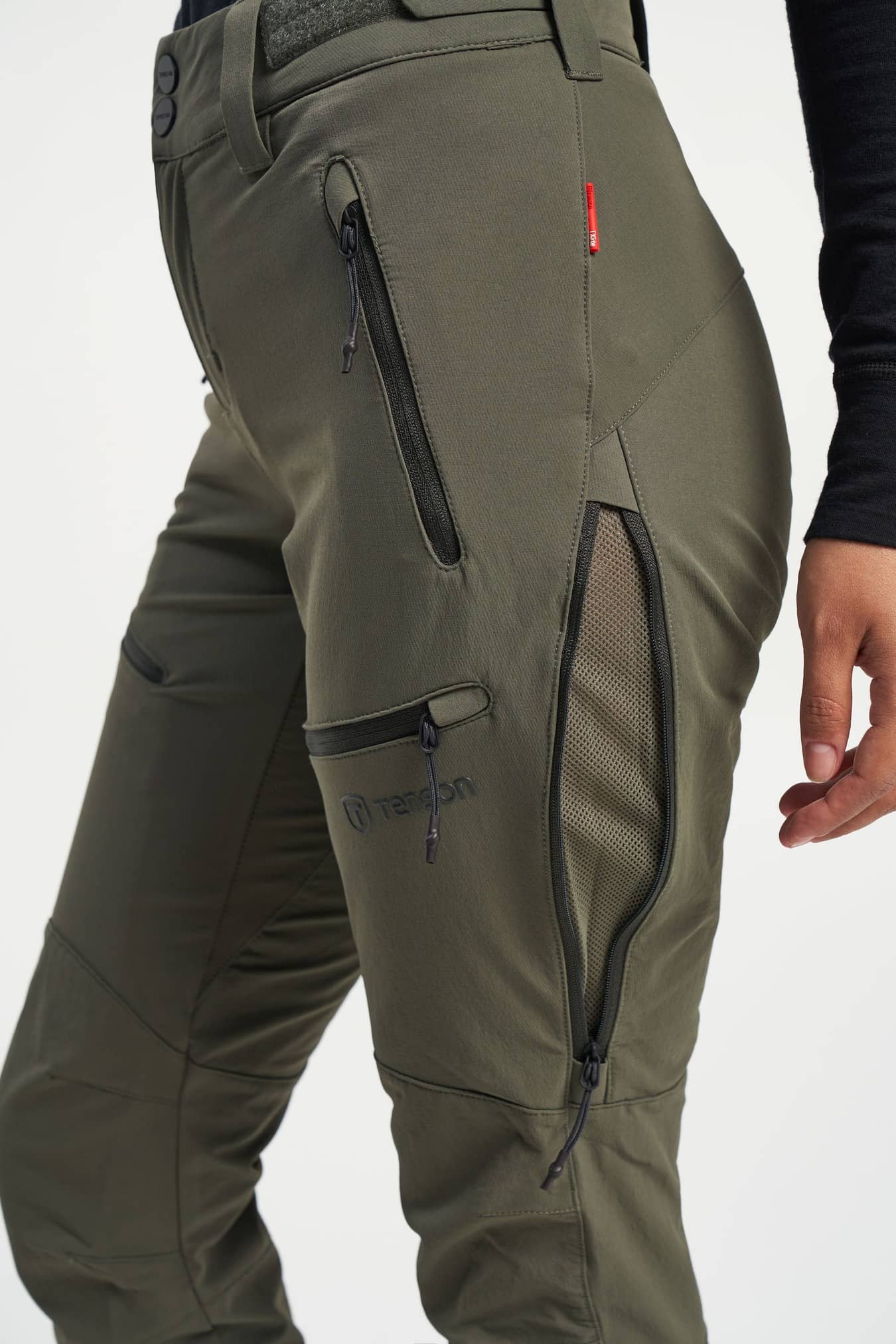 • Adjustable leg ending, Adjustable waist, Articulated knees, One back pocket with zipper, Reinforcement, Removable plastic boot hook at leg hem, Two front pockets with zippers, Two leg pockets with zippers, Ventilation, Zip in leg ending