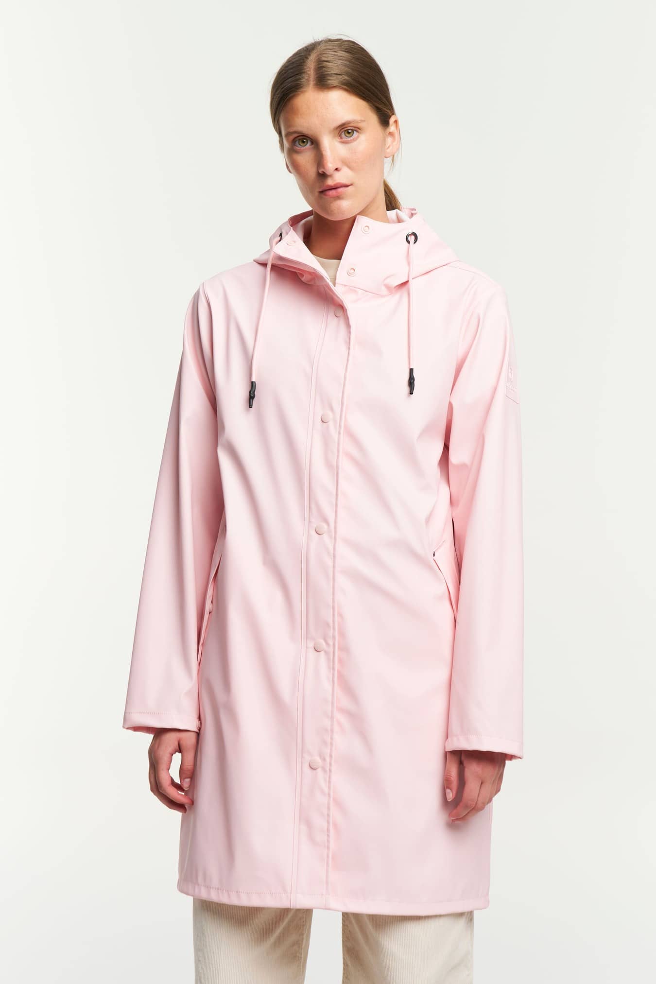 Apelvikens PU-regnfrakke har et klassisk design i en lige silhuet med blødt jerseystof på indersiden. Frakken har justerbare manchetter og en slids bagpå, som giver dig fuld bevægelighed. Den tåler et vandsøjletryk på 5.000 mm, har en behagelig fast hætte og forseglede sømme, der holder dig tør.