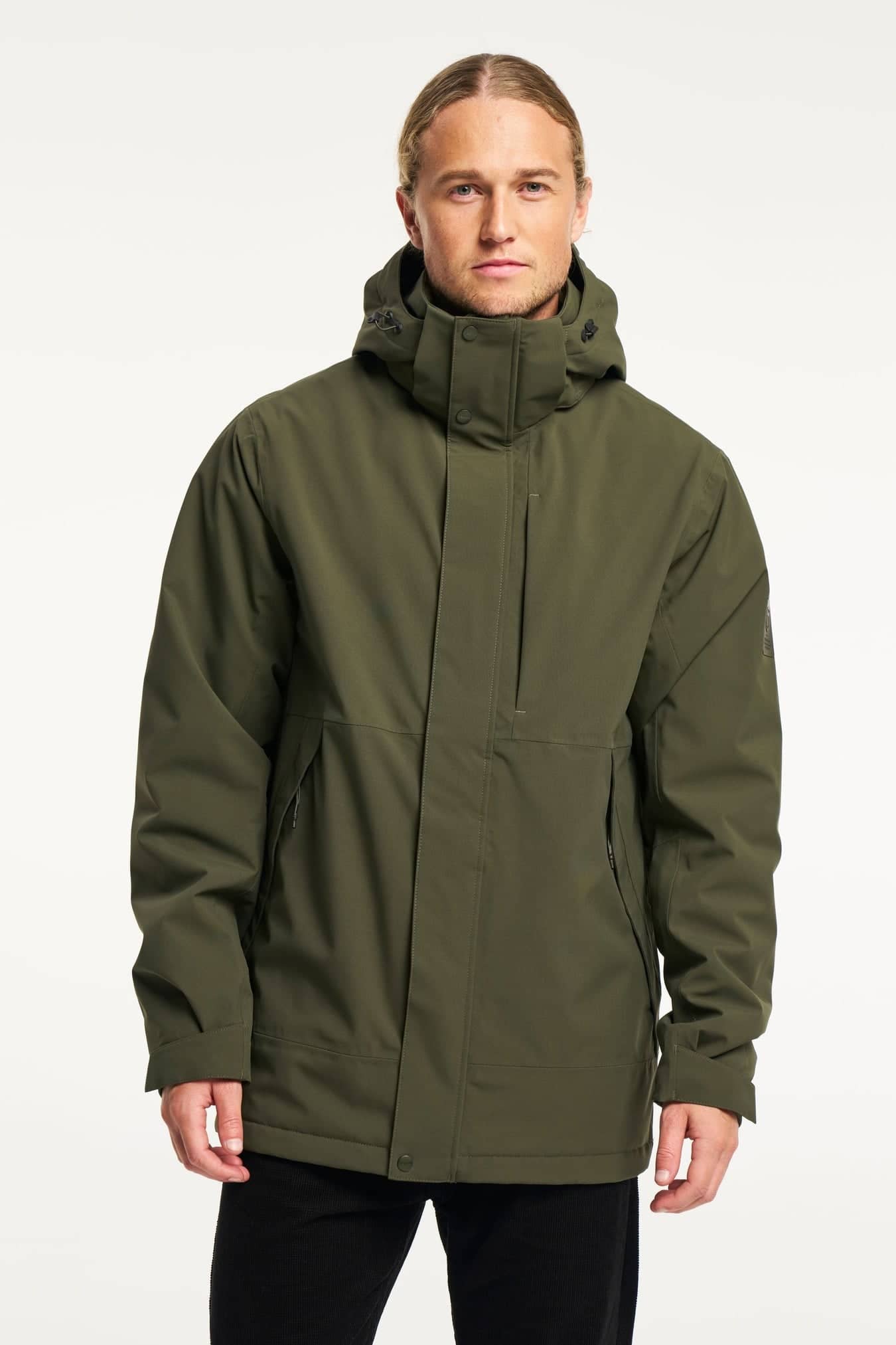 Adjustable cuffs, Adjustable hood, vertical and horizontal, Articulated sleeves, Chest pocket with zipper, Detachable hood, E-dye Polyester lining, Fleece inside collar, Fleece lined pockets, Hem adjustment, Inner pocket with zip, Taped seams, Two front pockets with zippers