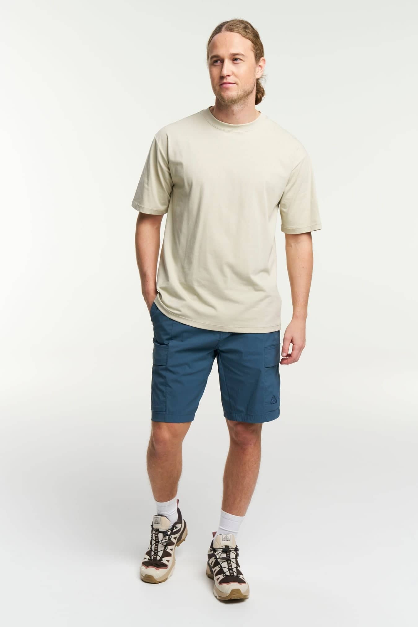 Disse rejsevenlige Camper-cargoshorts er fremstillet i hurtigtørrende, genanvendt stretch ripstop-stof med justerbar elastik i taljen samt bælte og praktiske lommer, perfekte til hverdagsbrug.