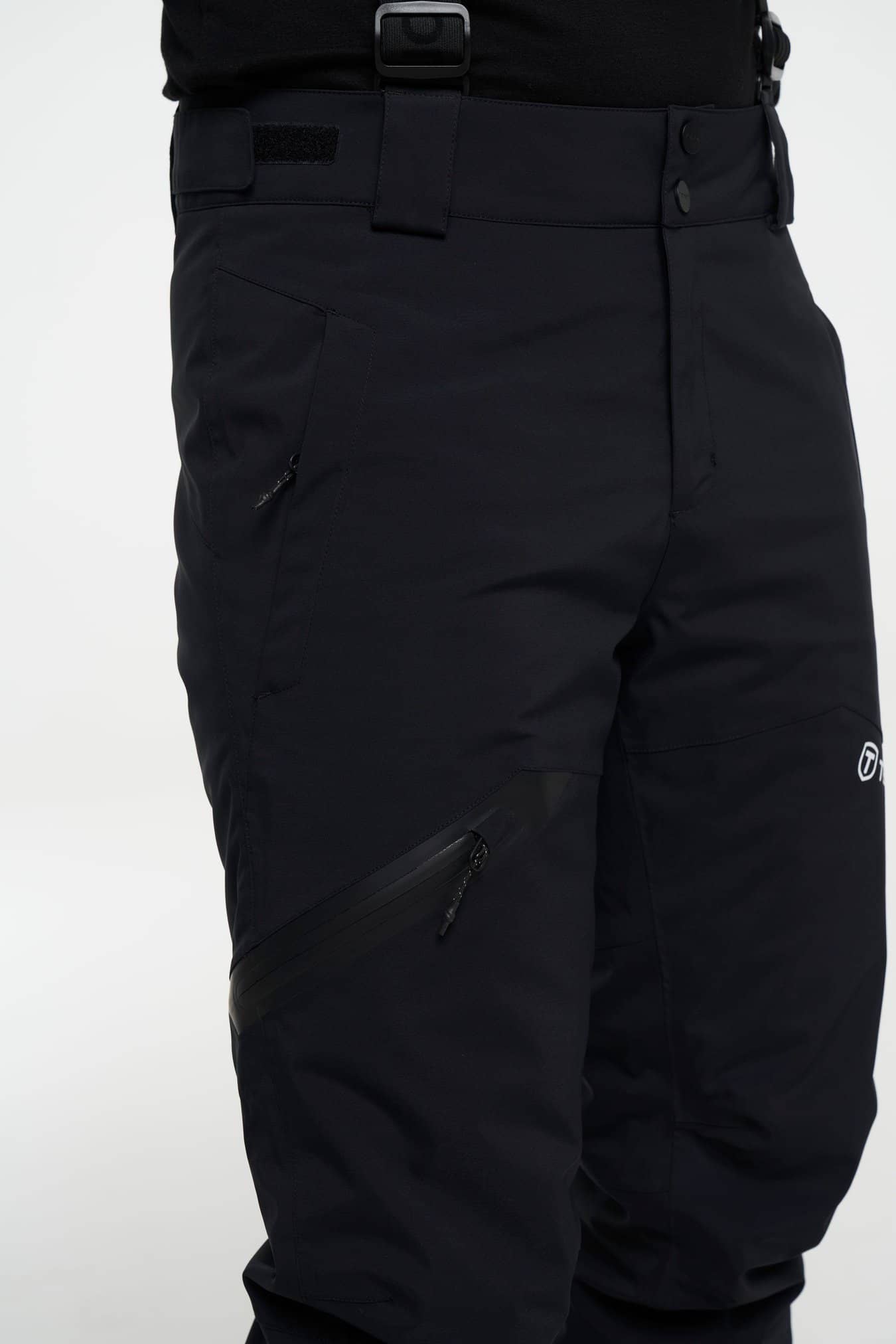 80 gr Air-Push Polyester insulation, Adjustable waist, Articulated knees, Detachable suspenders, E-dye Polyester lining, Elastic in waist, Fleece lined pockets, Lockable zipper, One leg pocket with zipper, Reinforcement, Secure double closure with button and hook, Snowgaiter, Taped seams, Two front pockets with zippers, Zip in leg ending