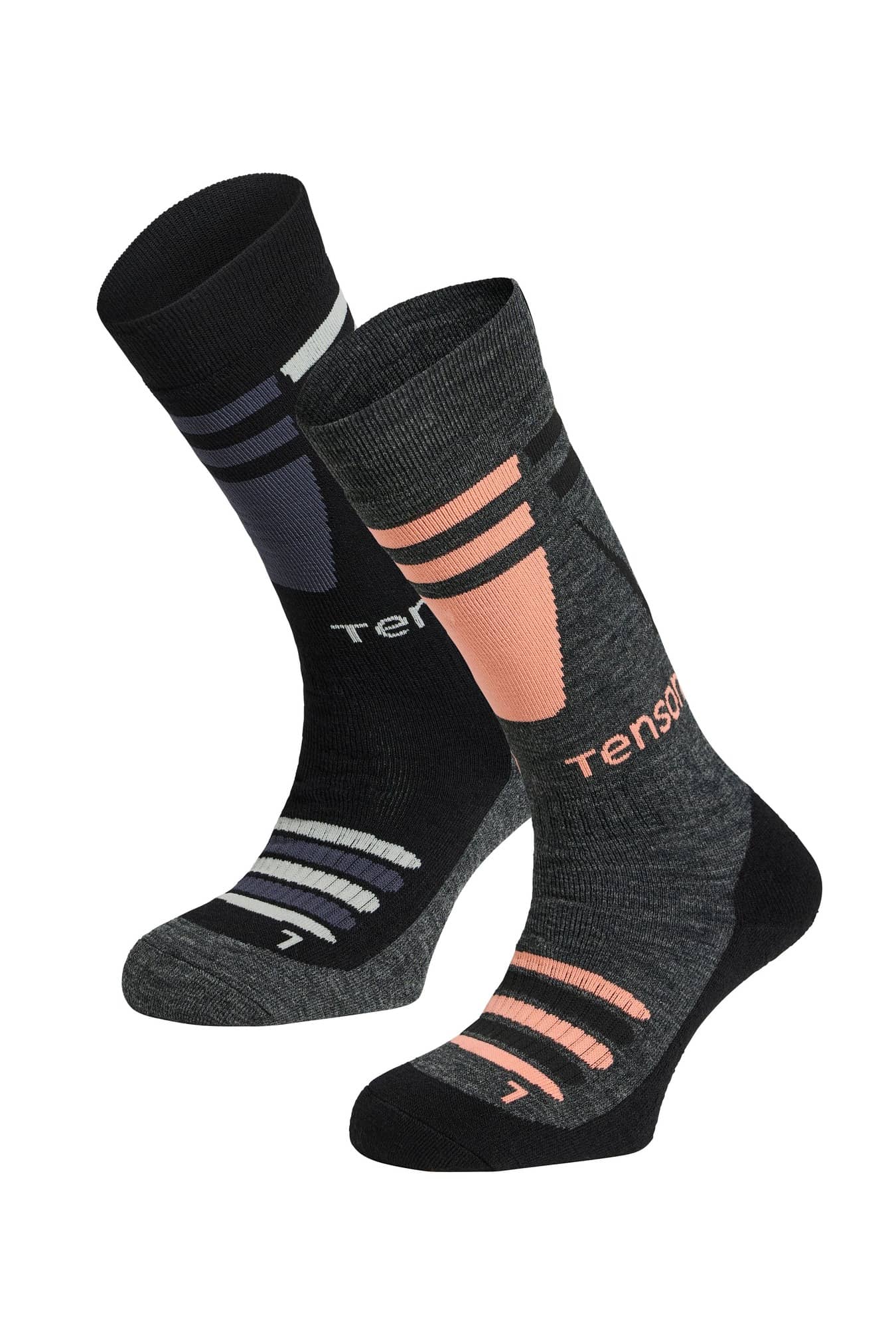 Skistrømpe med en afbalanceret blanding af materialer, som giver varme, komfort og tørre fødder under skiløbet.