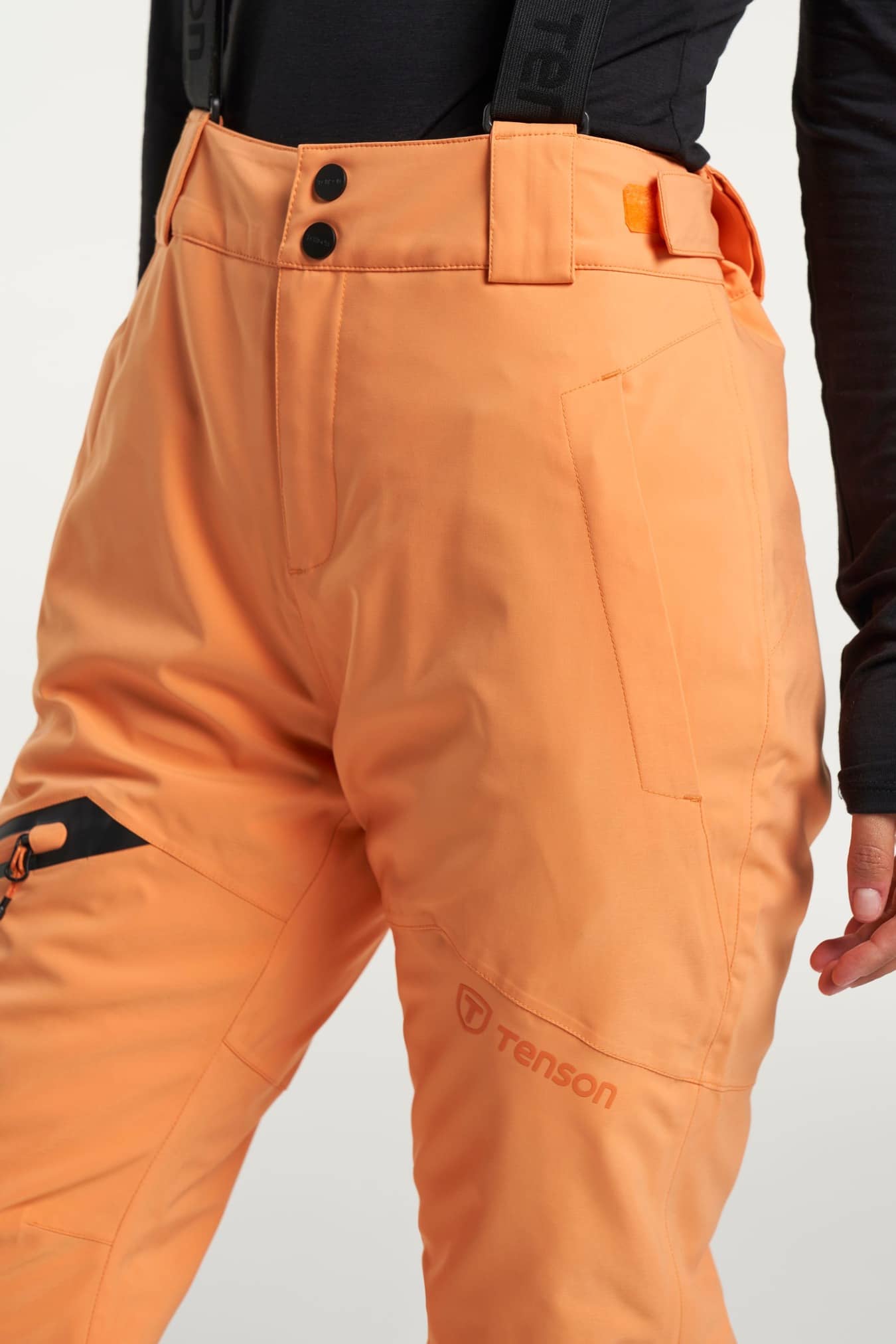 80 gr Air-Push Polyester insulation, Adjustable waist, Articulated knees, Detachable suspenders, E-dye Polyester lining, Lockable zipper, One leg pocket with zipper, Reinforcement, Snowgaiter, Taped seams, Two zippered front pockets, Zip in leg ending