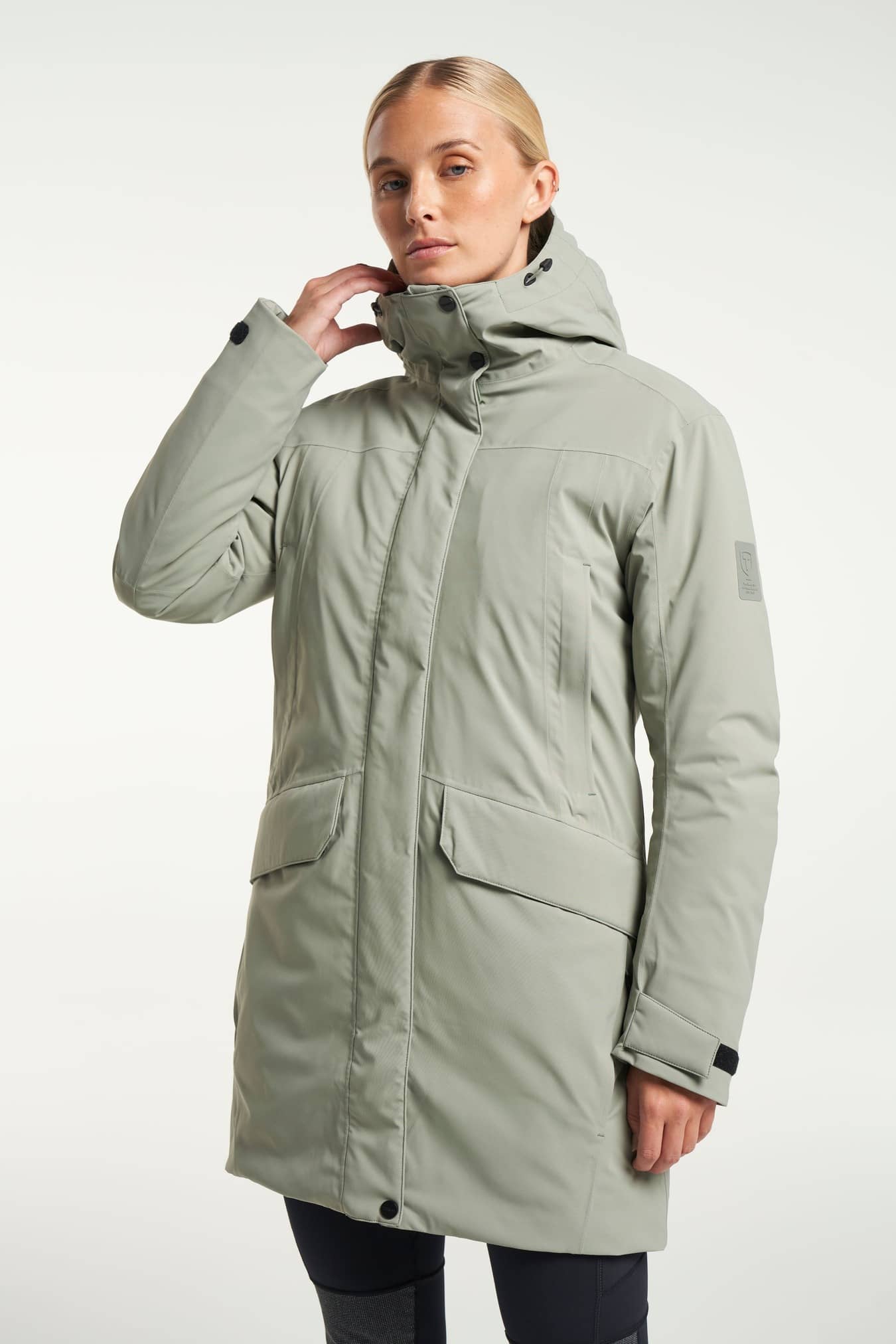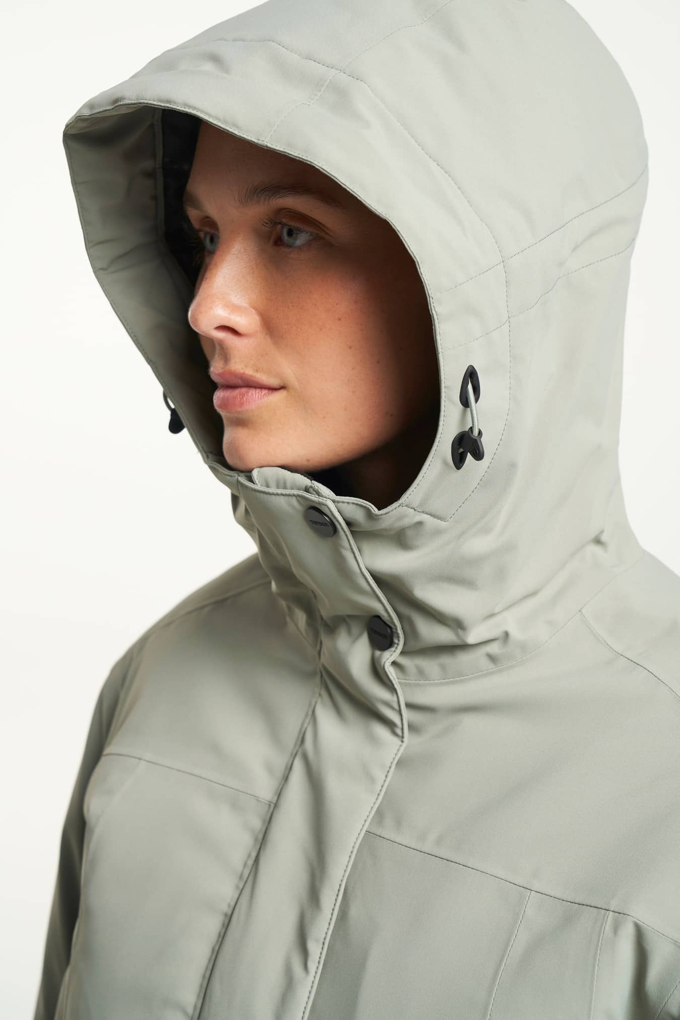 Eve Jacket er en klassisk vandafvisende dameparka med fast hætte. Udstyret med tapede sømme og Tensons egen MPC-teknologi (WP 5.000 mm / MP 5.000 g/m2/24 t), som kombinerer meget effektiv vandtæthed med enestående åndbarhed. På dage, hvor det er lidt varmere, kan lynlåsen åbnes i begge ender for ekstra ventilation. Den har to diskrete brystlommer med lynlås og to håndvarmerlommer, der kan åbnes foroven og i siderne. Har E-dye polyesterfor og en PFC-fri vandafvisende overflade.