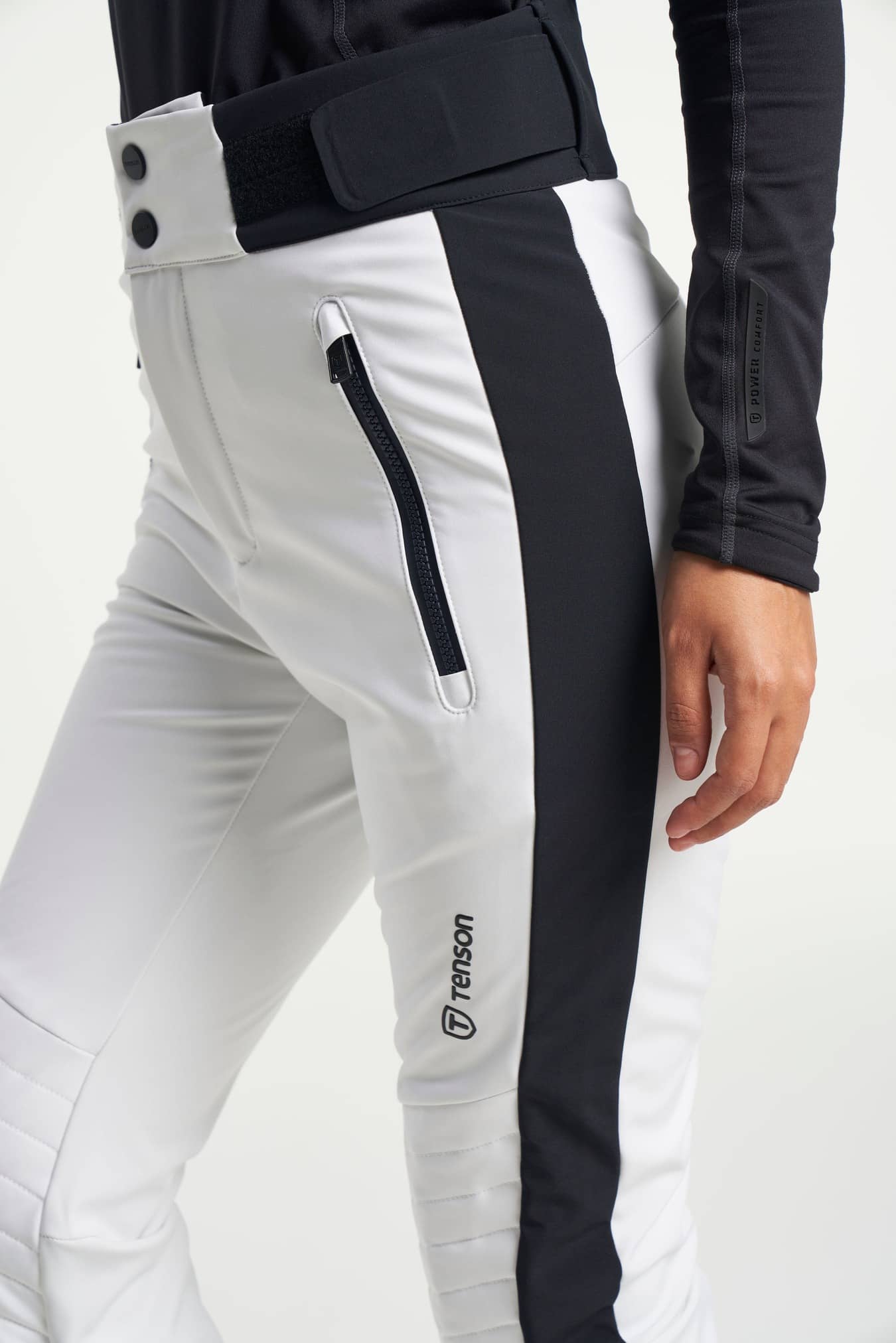 Adjustable waist with hidden elastic, Articulated knees, Elastic in waist, Lockable zipper, Padded knee panel, Reinforcement, Secure double closure with button and hook, Silicone gripper at leg opening, Snowgaiter inside leg hem, Two front pockets with zippers, Water repellent zippers, Zip in leg ending