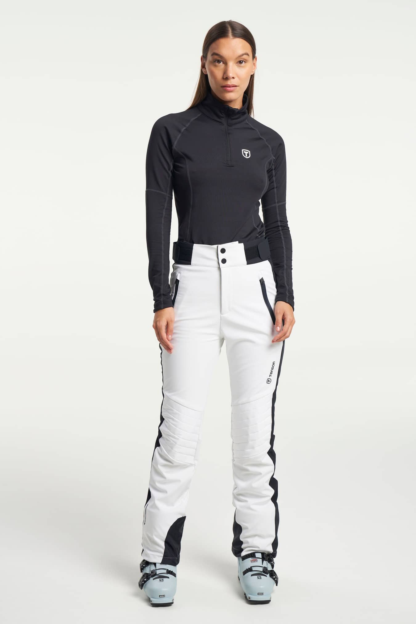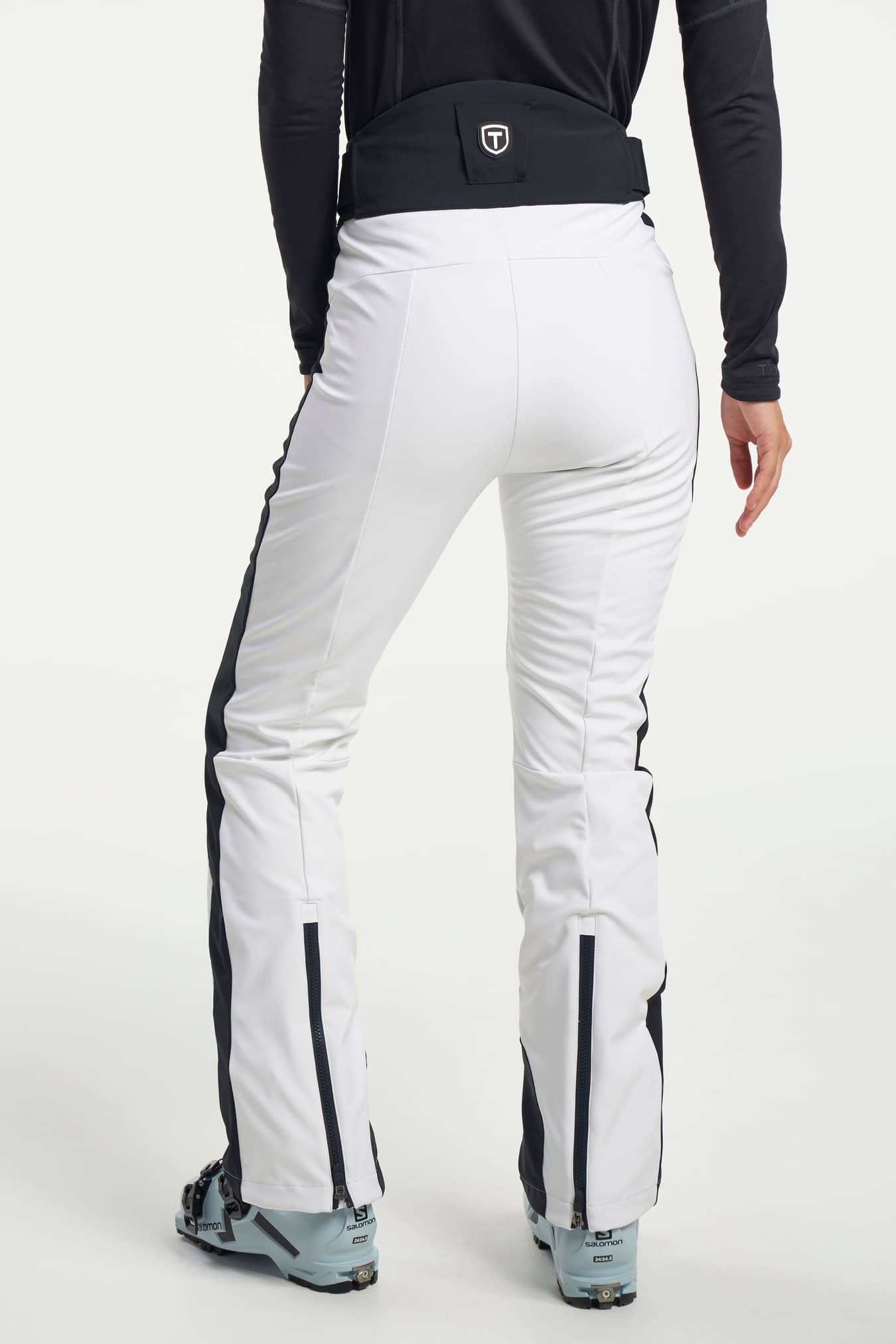 Grace softshell skibukser til kvinder har et stilfuldt design og en række funktioner. Bukserne har en høj, slank silhuet, der følger dine kurver perfekt hele vejen ned til støvlerne. Softshell-stoffet i polyester og spandex gør dem meget bløde og behagelige. Du kan også justere taljen med den skjulte elastiksnøre. Du behøver ikke bekymre dig om at blive kold, da de er foret med varmende fleece. Ved anklerne er der en snefangslås og en silikonegriber, som forhindrer sne i at trænge ind. De har også to lynlåslommer foran, så du kan opbevare dine ejendele sikkert. Sæt disse bukser sammen med vores Grace skijakke i en farve efter eget valg!
