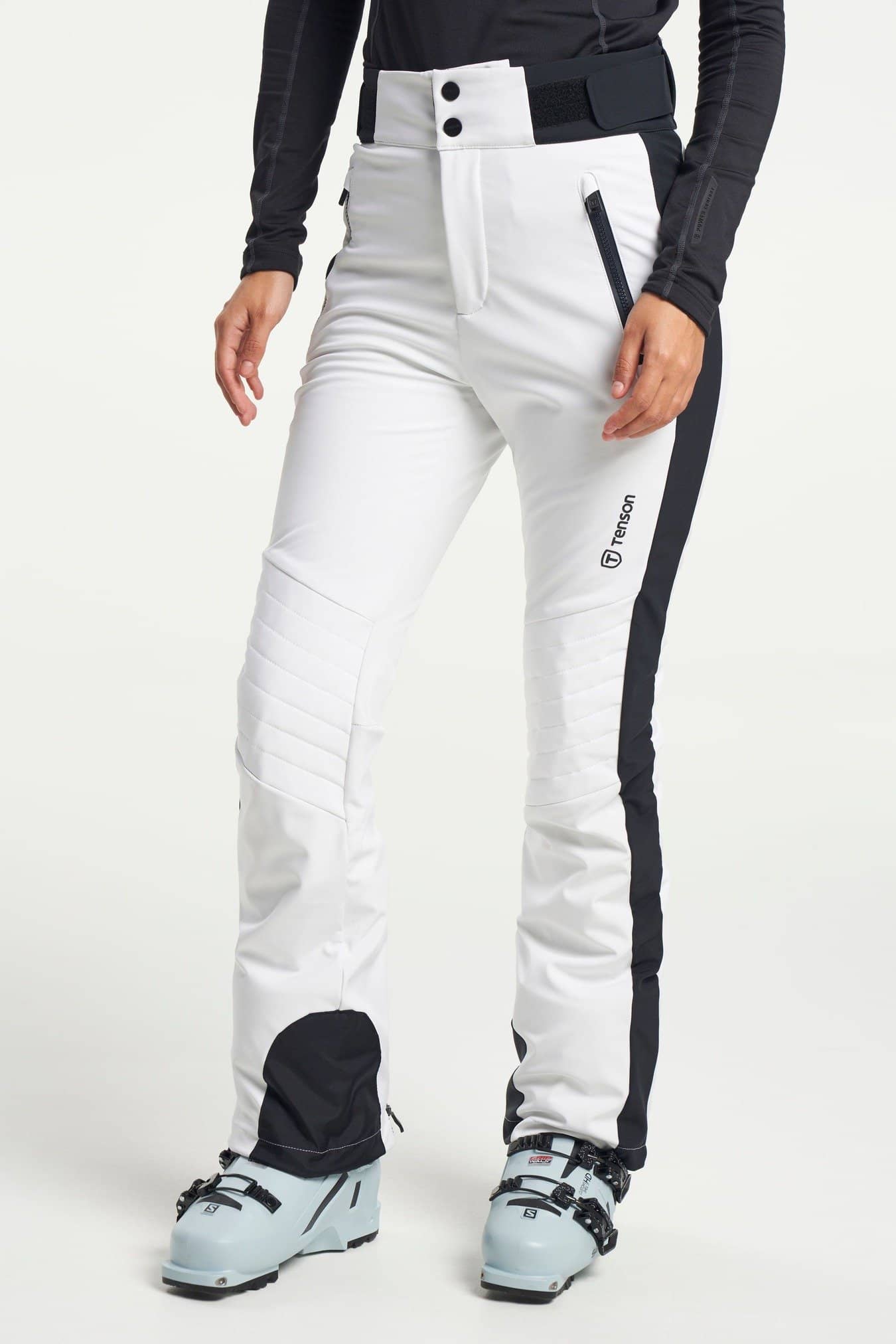 Grace Softshell Ski Pant er en moteriktig softshellbukse som gir en elegant og stilig silhuett. Skibuksen har elastisk og justerbar midje, og har ekstra bevegelsesfrihet takket være det elastiske, vannavvisende og vindtette softshell-materialet. To glidelåslommer i front, glidelås i benavslutningene, vatterte knær, snølås i benavslutningene og vannavvisende glidelåser.