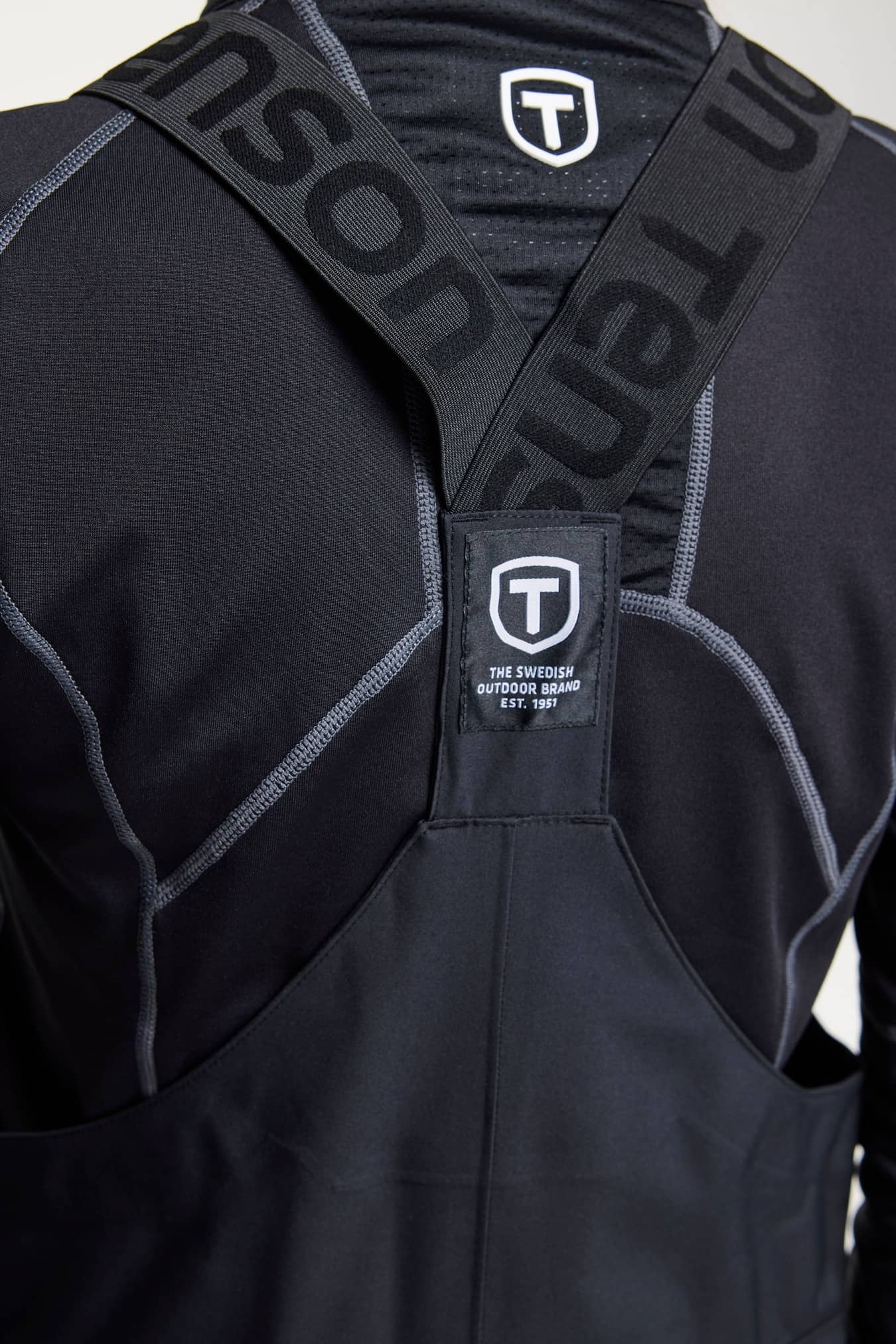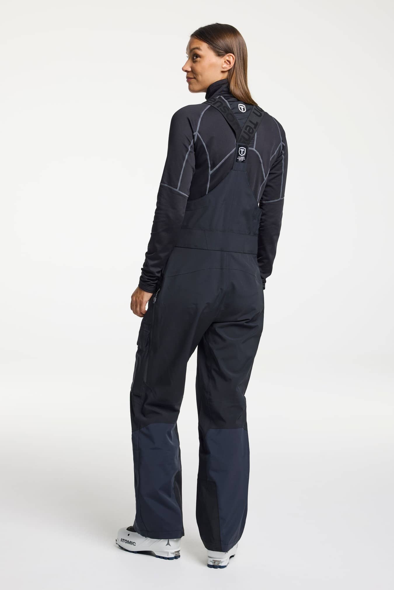 Adjustable leg ending, Adjustable waist with hidden elastic, Articulated knees, Bib with adjustable suspenders, Reinforcement, Silicone gripper at leg opening, Snowgaiter inside leg hem, Taped seams, Two front pockets with zippers, Two legpockets at front, Water repellent zippers, Ventilation at sides