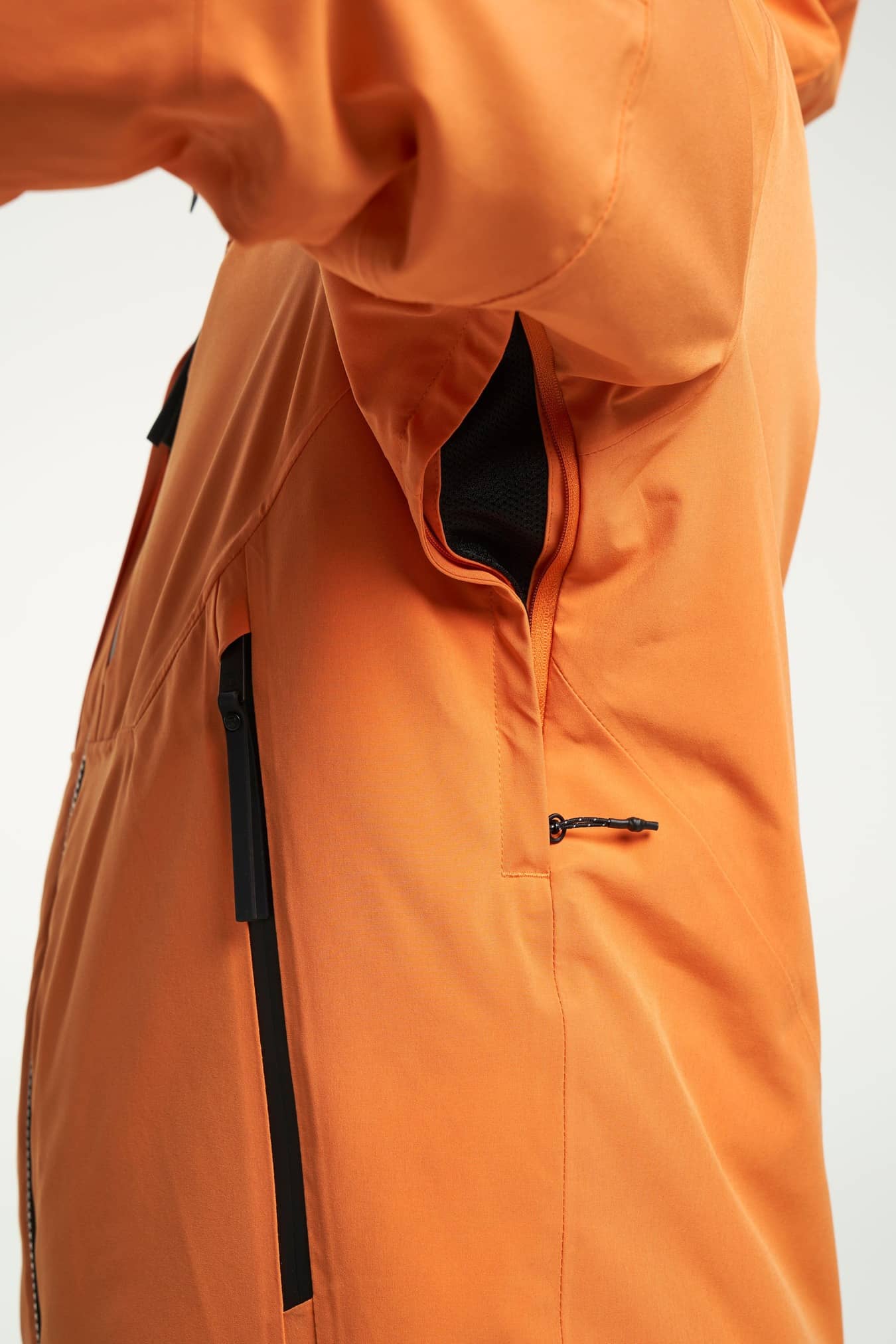 120 gr High-loft synthetic insulation, Adjustable cuffs, Adjustable hem, Adjustable hood, vertical and horizontal, Articulated sleeves, E-dye Polyester lining, Fixed hood, Fleece inside collar, Fleece lined pockets, Folded chinguard, Hem adjustment, Inner lycra cuffs at sleeve ends, Innerpocket with elastic mesh, Innerpocket with zip, Laminated brim, Ski pass pocket, Snow skirt: removable with zip, Taped seams, Two chest pockets with zippers, Two front pockets with zippers, Water repellent zippers, Ventilation under arm