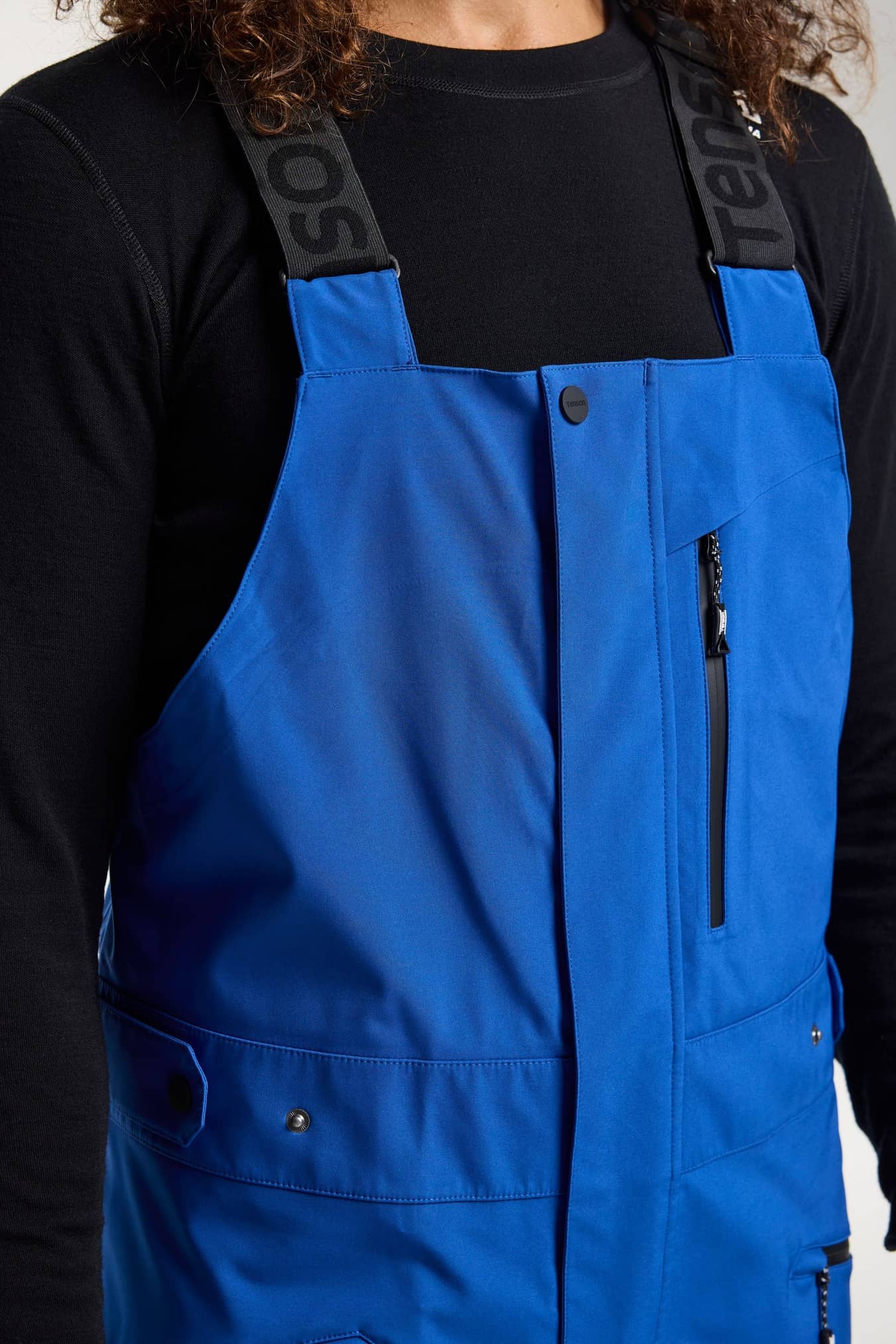 Adjustable waist with hidden elastic, Articulated knees, Bib with adjustable suspenders, Reinforcement, Silicone gripper at leg opening, Snowgaiter inside leg hem, Taped seams, Two front pockets with zippers, Two legpockets at front, Water repellent zippers, Ventilation at sides