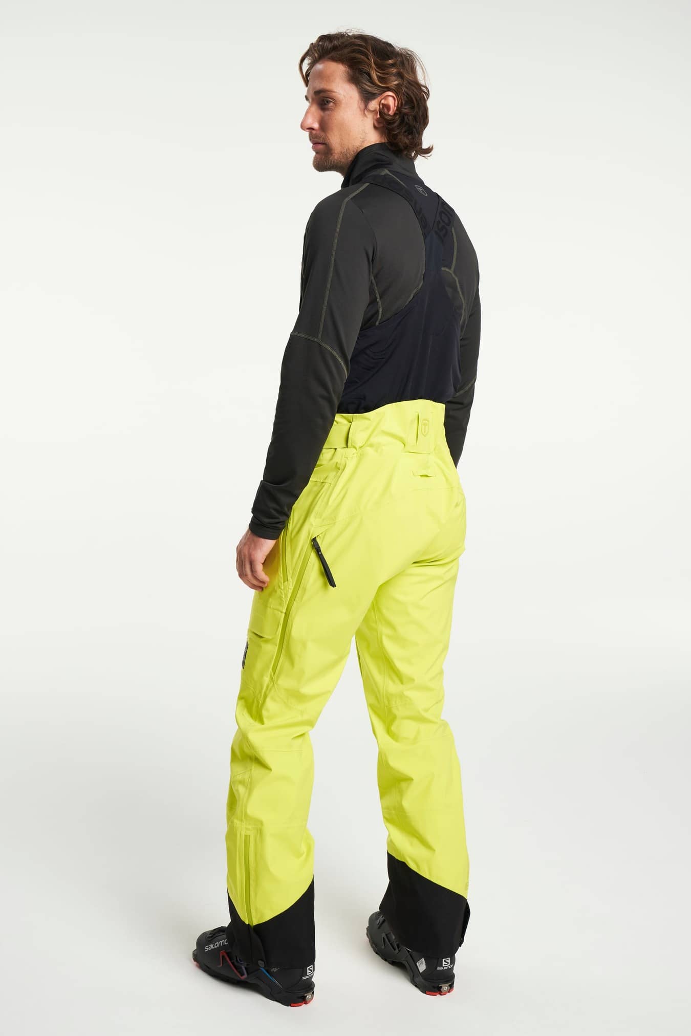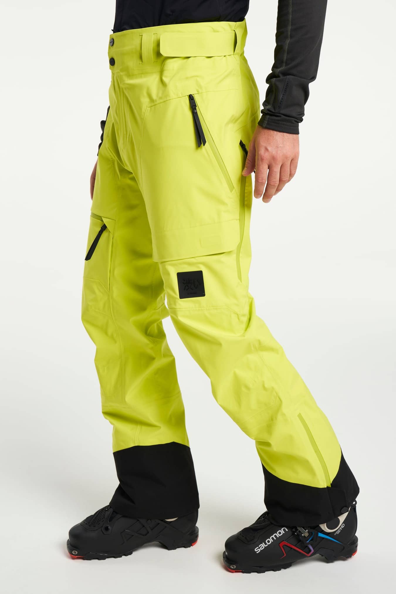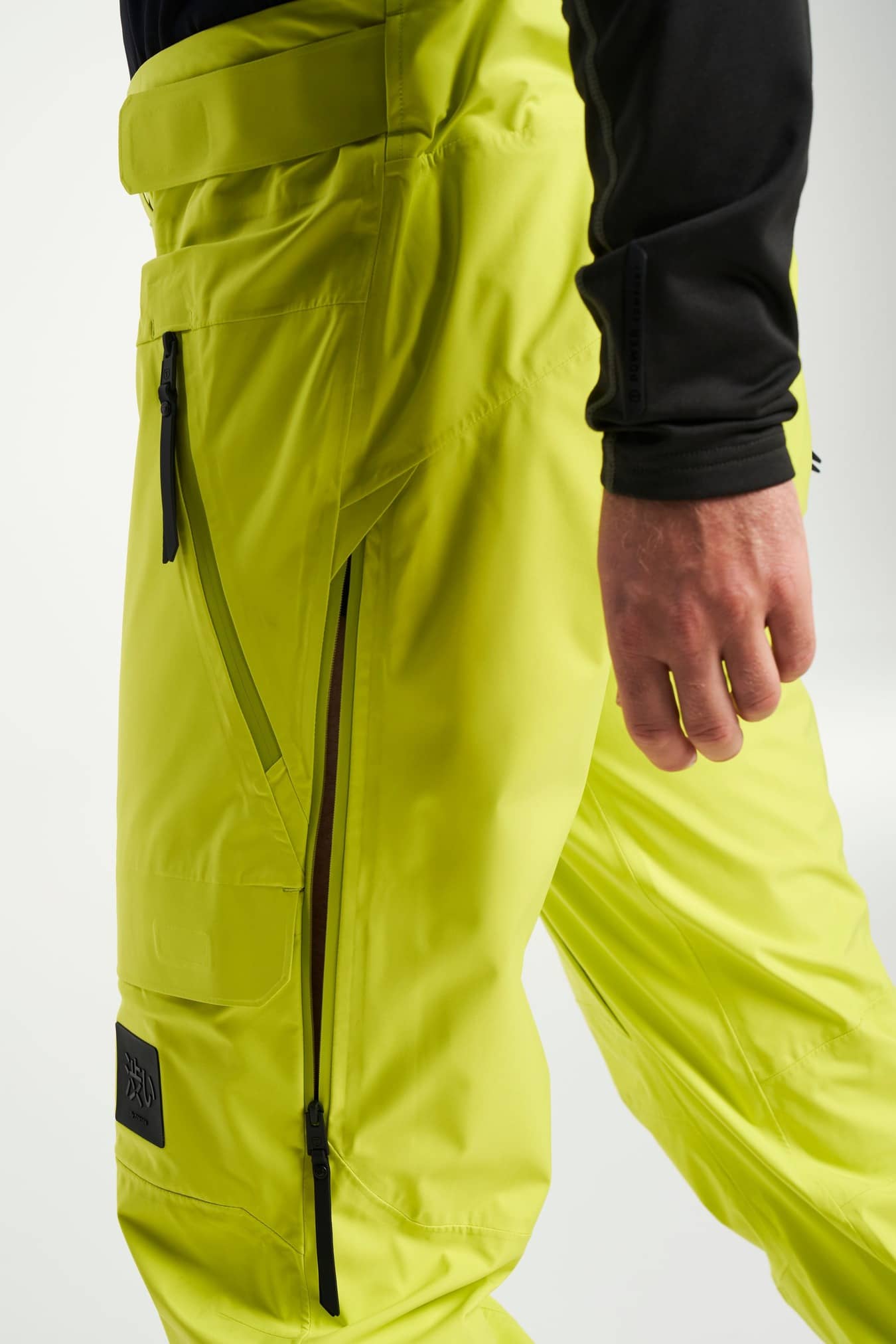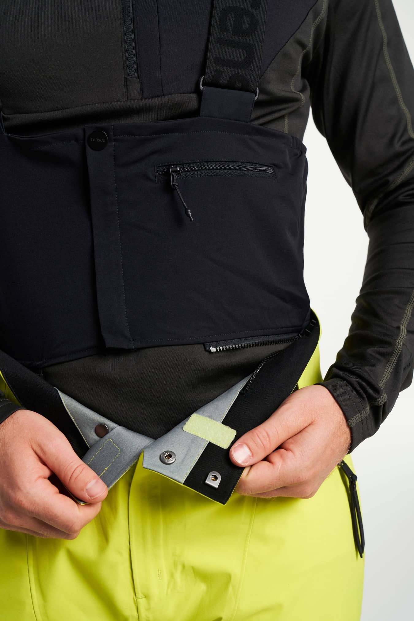 Adjustable leg ending, Adjustable waist with hidden elastic, Articulated knees, Detachable bib with adjustable suspenders, Reinforcement, Secure double closure with button and hook, Silicone gripper at leg opening, Snowgaiter inside leg hem, Taped seams, Two front pockets with zippers, Two legpockets at front, Water repellent zippers, Ventilation at sides, Zip in leg ending