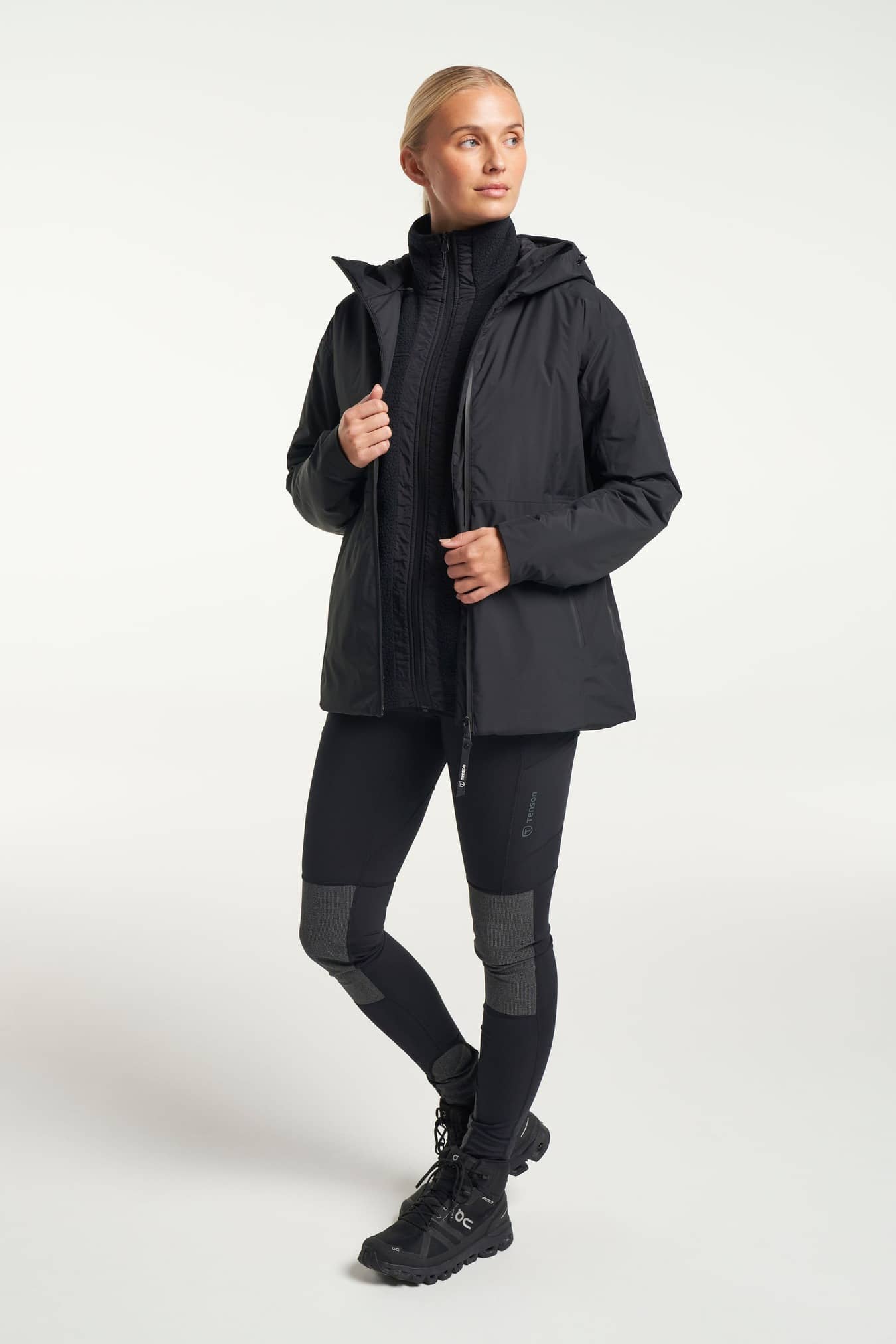 Shift-kollektionen er designet og udviklet for at sikre en nem overgang fra sommer til efterår, hvor vejret ofte er uforudsigeligt. Shift Jacket er en klassisk stilfuld, foret og vatteret regnjakke til damer. Med Tensons egen MPC-teknologi (WP 5.000 mm / MP 5.000 g/m2/24 t) og tapede sømme kombinerer den ekstremt effektiv vandtæthed med enestående åndbarhed, så du kan føle dig godt tilpas uanset vejret. Jakken har en fuldt justerbar hætte og høj krave, der holder vinden væk fra halsen. Alle sømme er tapede, og lynlåsen er vandafvisende for at holde dig tør i regnvejr. Denne jakke er foret med genanvendt AirPush Insulate™-polyester for ekstra varme. Den har to lommer foran, begge med lynlås, til vigtigere ting som telefon og pung, så du ikke skal bekymre dig om at tabe dem. Den har også inderlomme med lynlås. Brug den i byen og/eller ude i naturen. Har en PFC-fri vandafvisende overflade.