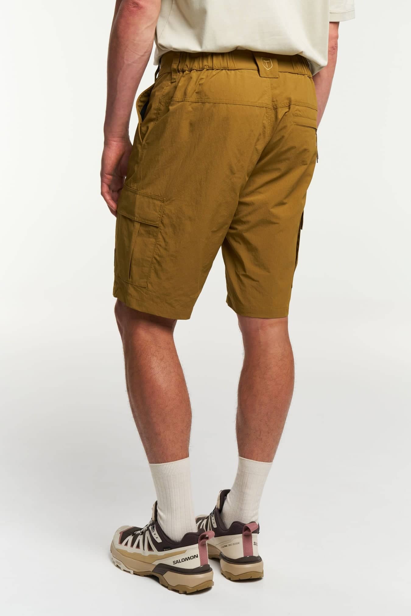 Disse rejsevenlige ripstop-cargoshorts er fremstillet i slidstærkt hurtigtørrende genanvendt polyamid og har en elastisk talje, en baglomme med lynlås, to benlommer og to skrå åbne frontlommer.