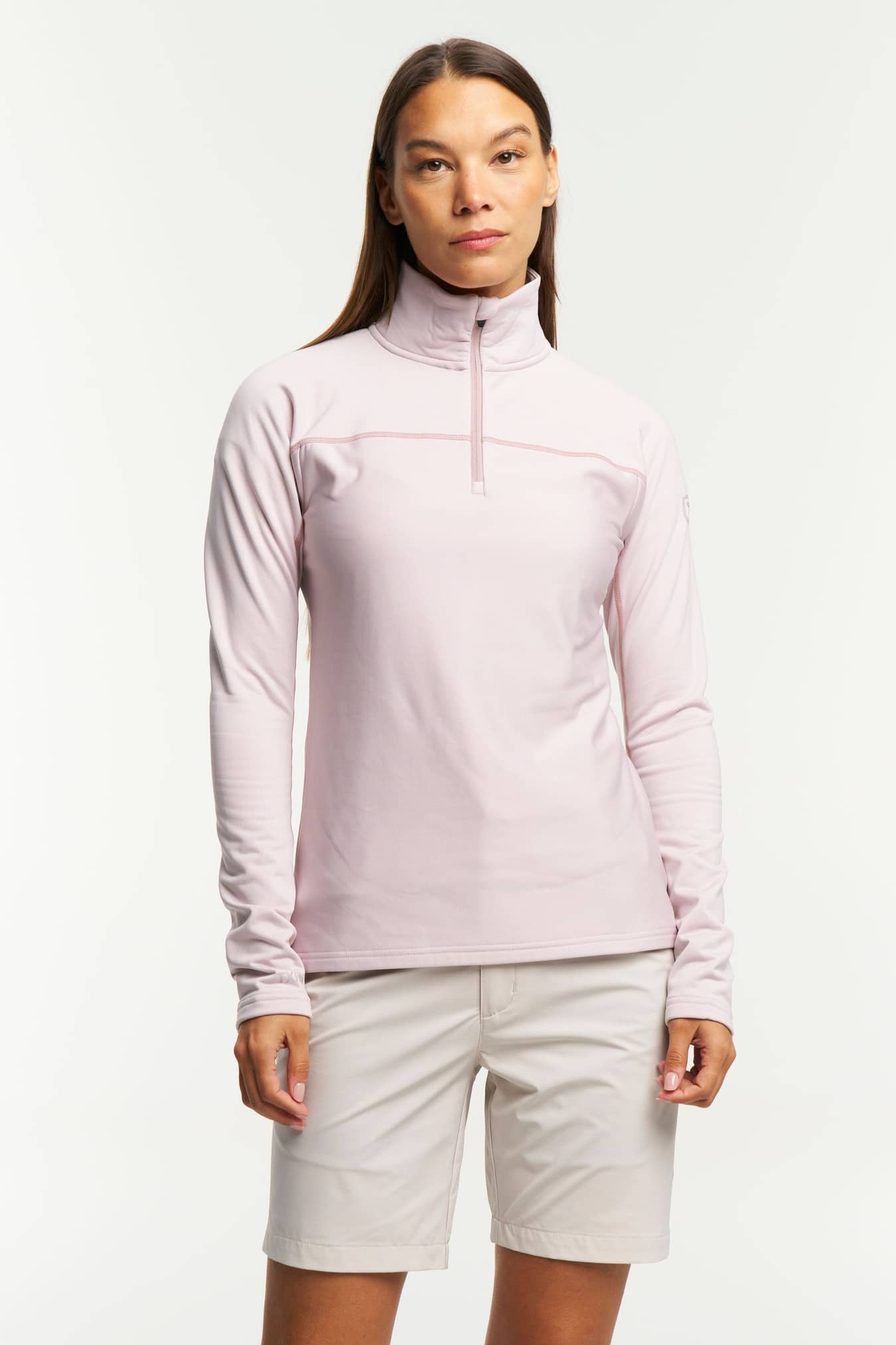 Et tyndt mellemlag eller basislag, alt efter hvad du foretrækker, som holder dig tør, komfortabel og giver varme uden at være for tykt. Fremstillet i en behagelig strækbar Power Comfort™ - 90 % genbrugspolyester og 10 % elastan, som gør den strækbar og hurtigtørrende, så du er smidig, når det er tid til udendørsaktiviteterne.