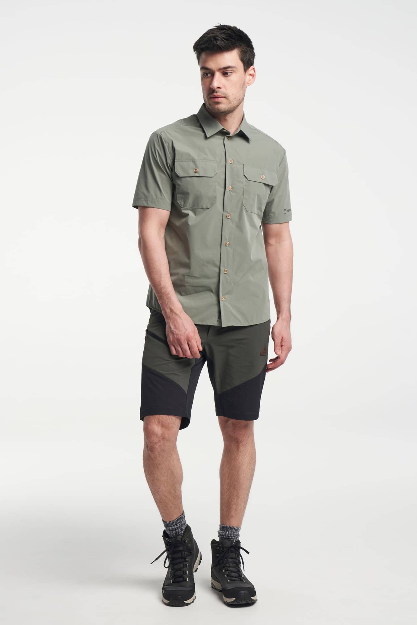 TXlite Shirt er en klassisk kortærmet skjorte til varmere dage. Den er lavet af et hurtigtørrende materiale og er perfekt at have på på varmere dage, eller hvis det pludselig begynder at regne. Føl dig frisk hele dagen i denne flotte skjorte, der fås i tre farver: blågrå, grågrøn og sort. Den har to brystlommer og knapper samt en søm bagpå for det klassiske look. Den er lavet af 100% polyester, men føles som en bomuldsskjorte, hvilket gør den meget behagelig og nem at pakke uden at blive krøllet. TXlite Shirt fungerer lige så godt til udendørs aktiviteter som til hverdag.