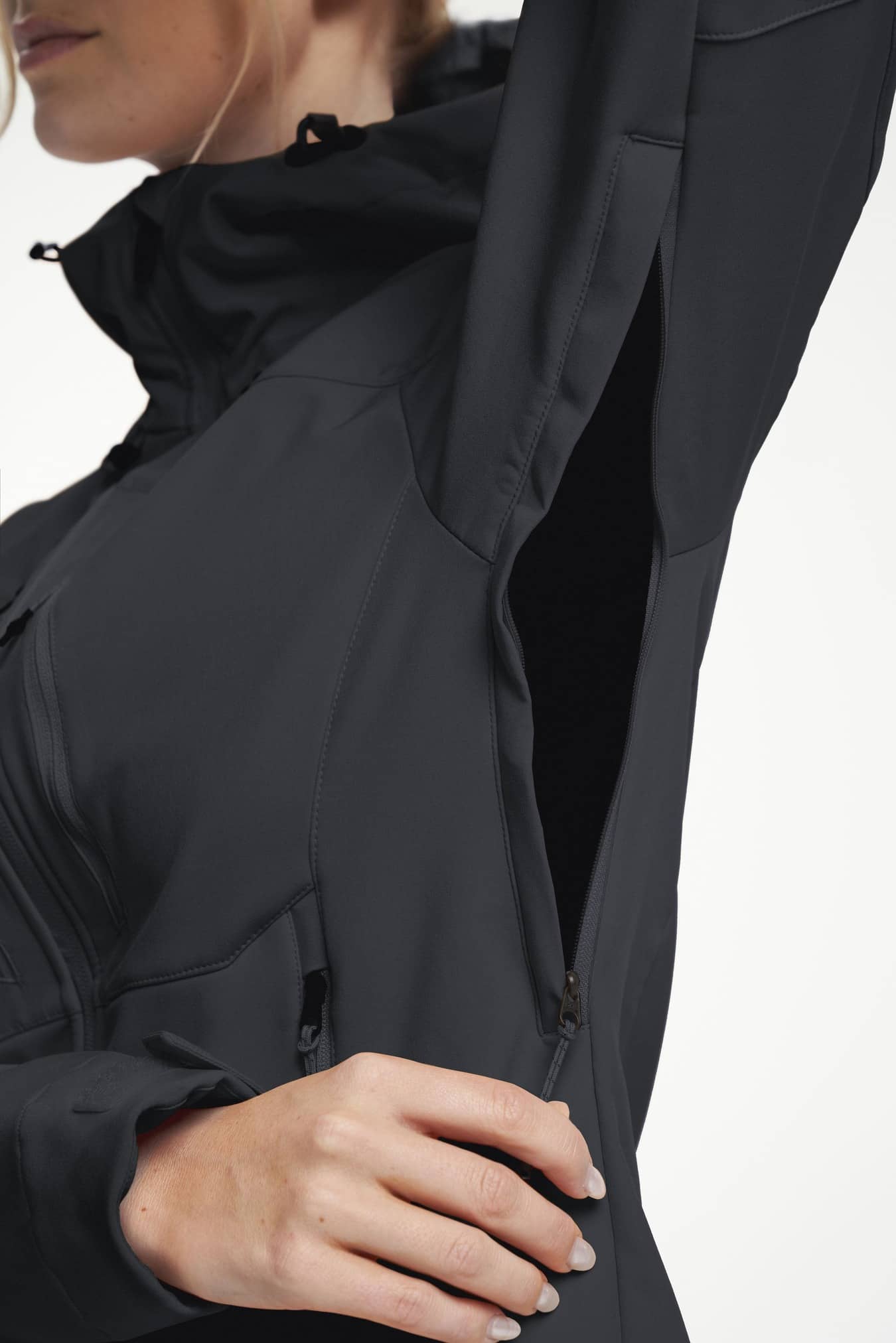 Adjustable cuffs, Adjustable hem, Adjustable hood vertical and horizontal, Fixed hood, Inner pocket, Two chest pockets with zippers, Two front pockets with zippers, Ventilation under arm