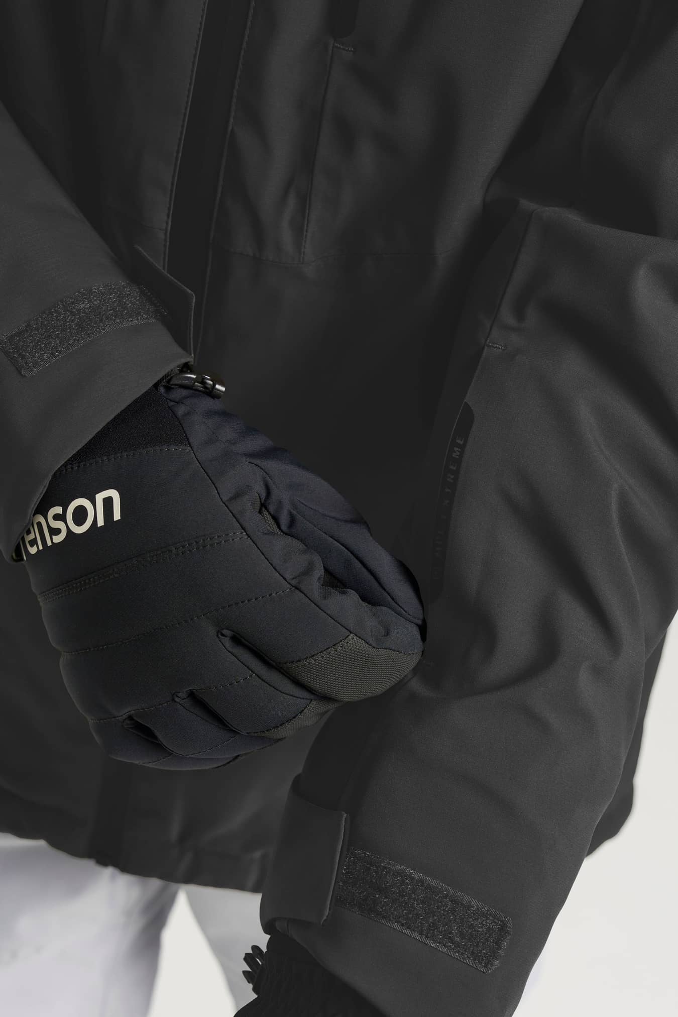 Adjustable cuffs, Adjustable hem, Adjustable hood, vertical and horizontal, Articulated sleeves, Fixed hood, Folded chinguard, Innerpocket with zip, One sleeve pocket with zipper, RECCO® Rescue system, Taped seams, Two chest pockets with zippers, Two front pockets with zippers, Water repellent zippers, Ventilation under arm
