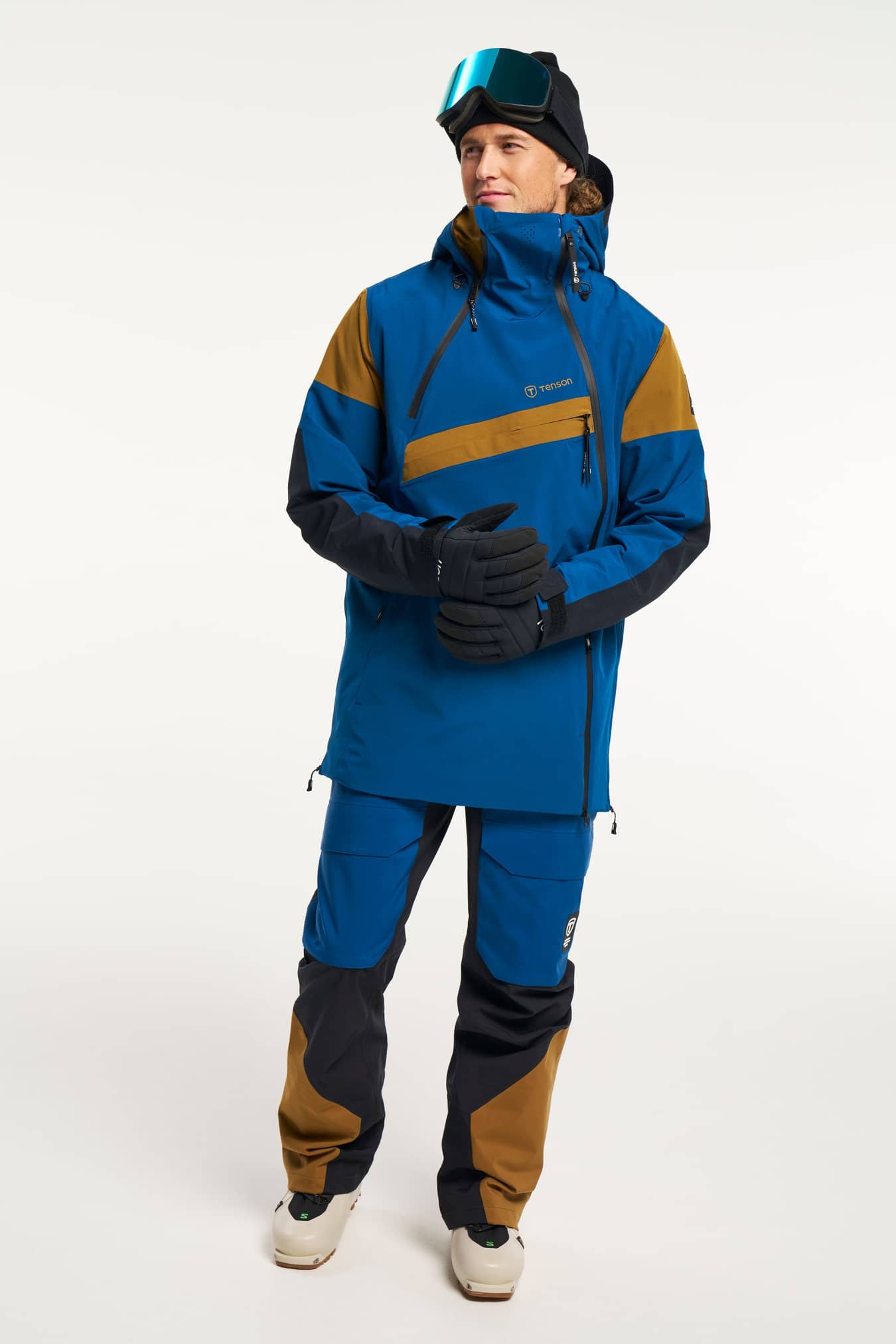80 gr Air-Push Polyester insulation, Adjustable cuffs, Adjustable hood vertical and horizontal, Articulated sleeves, E-dye Polyester lining, Extension for back protection, Fixed hood, Fleece inside collar, Fleece lined pockets, Folded chinguard, Helmet compatible hood, High collar, Inner lycra cuffs at sleeve ends, Kangaroo pocket at front, Laminated brim, Neon coloured details for visability, One zippered chest pocket, Ski pass pocket, Taped seams, Two way zip at front, Two zippered front pockets, Ventilation under arm