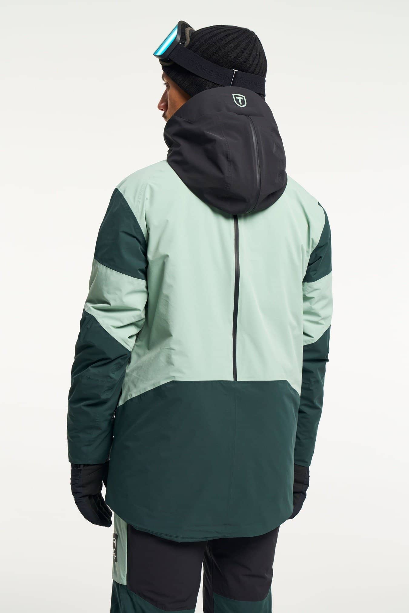 Freeride skiing conditions can vary tremendously, from extreme sub-zero, windy mornings to sunny and war- mer afternoons. With this in mind we’ve made sure our Freeride collection is versatile, adaptable, lightweight and durable to provide you with all-round comfort and protection from the elements. The Aero XX Ski Jacket has a unique zip functionality in the back featuring neon details for high visibility to fit back protectors and an expandable hood that fits over your helmet. The jacket is wind and waterproof with sealed seams to be able to handle long days out in the snow and is wind- proof to withstand strong winds and high speeds on the slope. The insides of the collar and pockets features fleece to keep your hands warm and comfortable. The main zip construction is a two-way zip that can be ope- ned from the bottom.