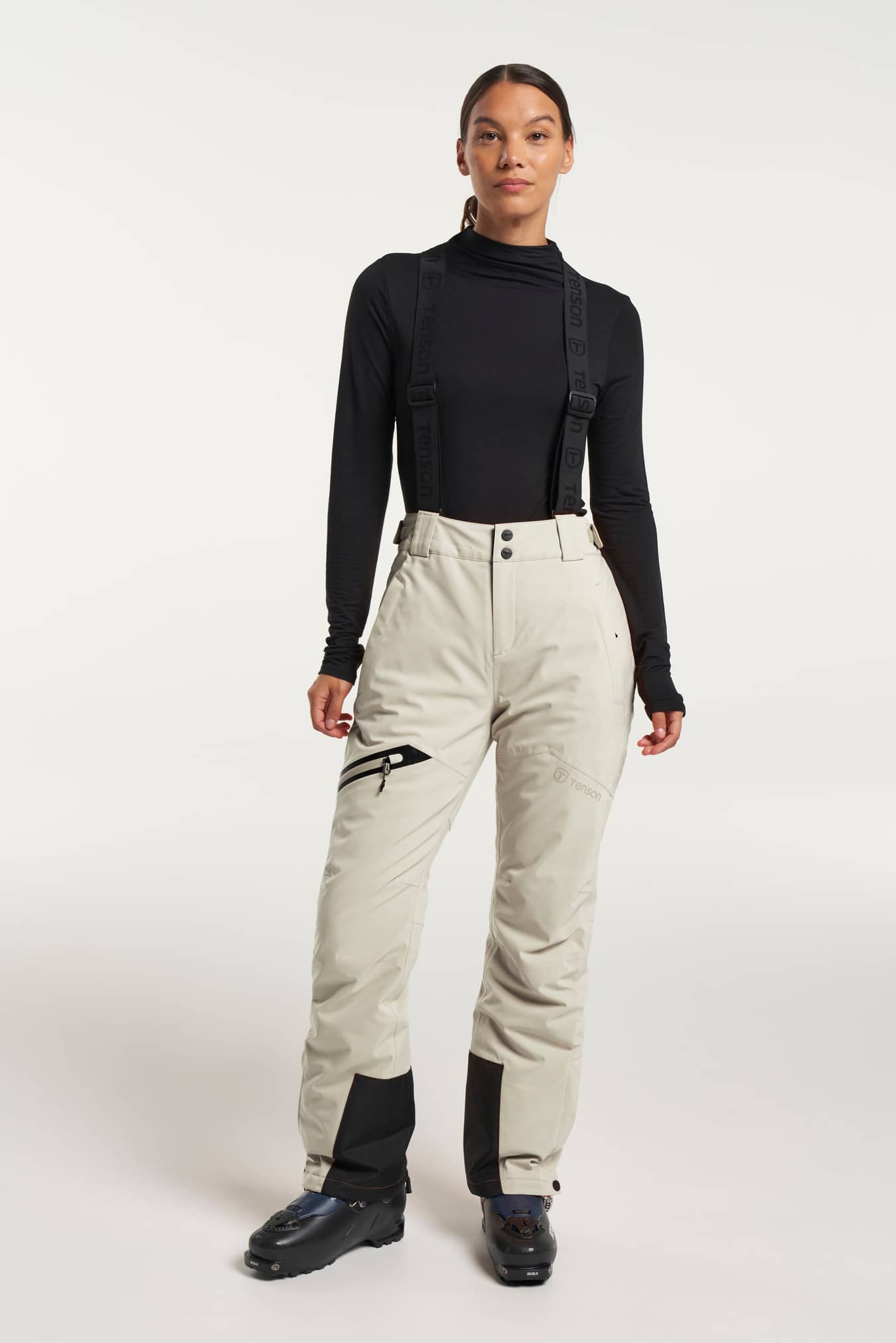 Core Ski Pants are a pair of classic and very versatile women's Ski Pants. They are powered with Tenson’s proprietary MPC Plus technology (WP 10 000mm / MP 10 000 g/m2/24 h) which combines very effective waterproofing with good breathability to keep you comfortable during snowy, windy, and wet conditions on the mountain. Features AirPush™ Insulate that provides vapor management while maintaining warmth. Core Pants can be used with or without braces, depending on what kind of fit you want and the adjustable waist and pre-bent knees add to freedom of movement. The pants have two front pockets with zips and a leg pocket for small items or just to warm your hands. The pants are reinforced on the inside, have snow gaiters by the ski boots to keep snow out regardless of the weather on the slope. Combine the pants with a Core MPC Plus Jacket for a complete set. Comes with E-dye polyester lining and a PFC free water-repellent finish.