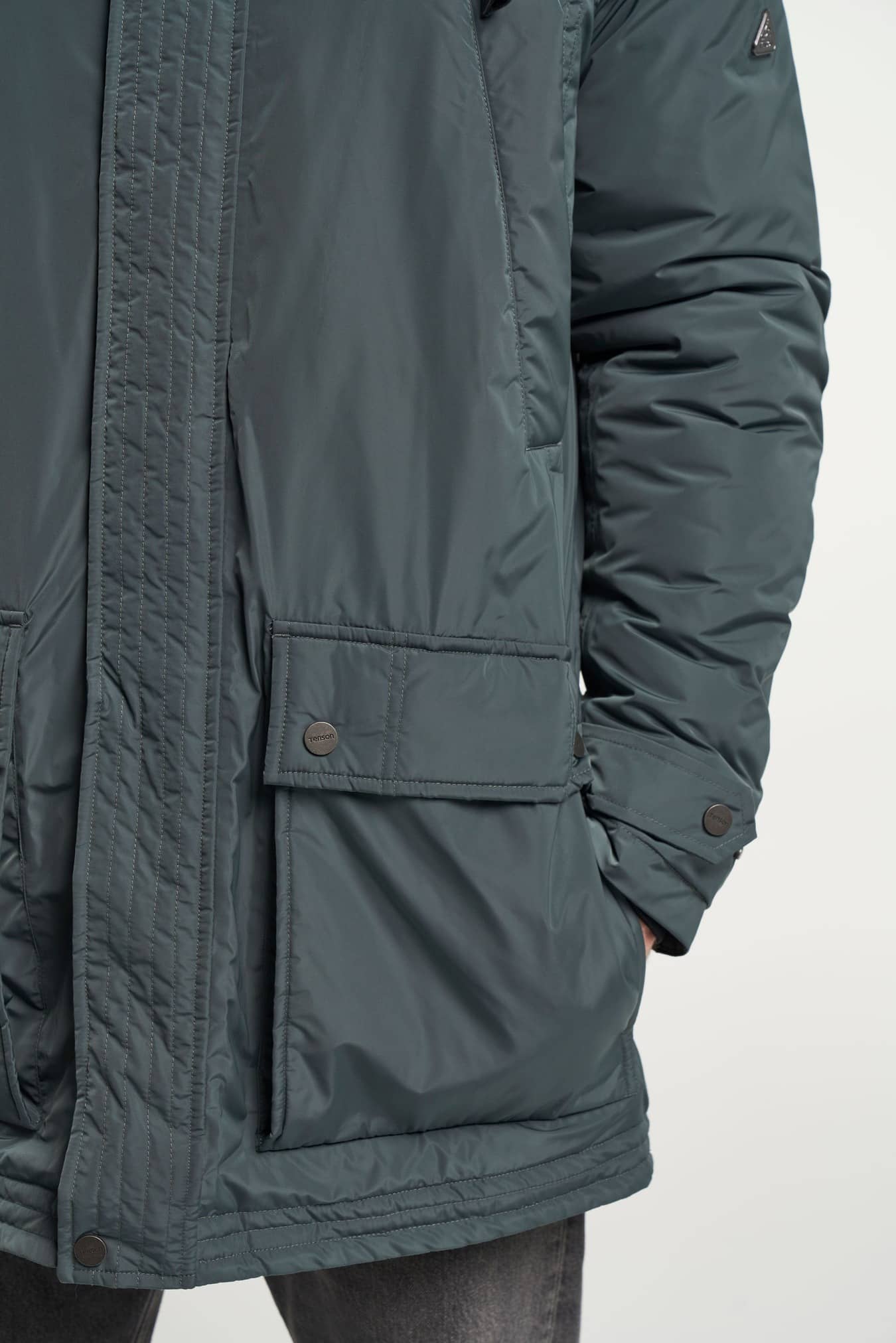 This is a new contemporary interpretation of the timeless Tenson classic parka launched already in 1972. Powered with tenson’s proprietary MPC membrane technology and taped seams that lets the fabric breathe while keeping water away and moisture passing through – a guaranteed waterproofness (water pillar) of at least 5.000mm and moisture meter of 5.000 g/m2/24h. Insulated with AirPush™ Insulate, a featherless padding, that offers lightweight, excellent breathability and voluminous insulation for cold weather conditions. Enjoy classic trademark features such as the buttoning with two-way zip, the signature sleeve pocket with leather and metal details and an adjustable fixed hood and adjustable waist.