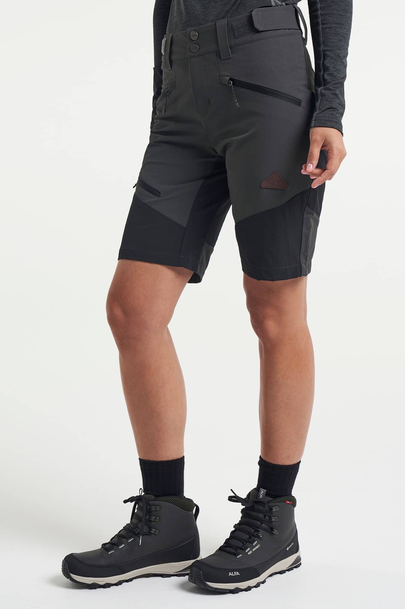 Outdoor women’s shorts made in four-way stretch and adjustable waist they stay in place and feel great when you’re on the move. Features a reinforced seat and four handy pockets: one regular back pocket, one zipped back pocket and two zipped front pockets. Made in a quick-drying material so you’ll soon dry off if you get caught in a shower. Wear them when you're hiking, gardening or your everyday activities.